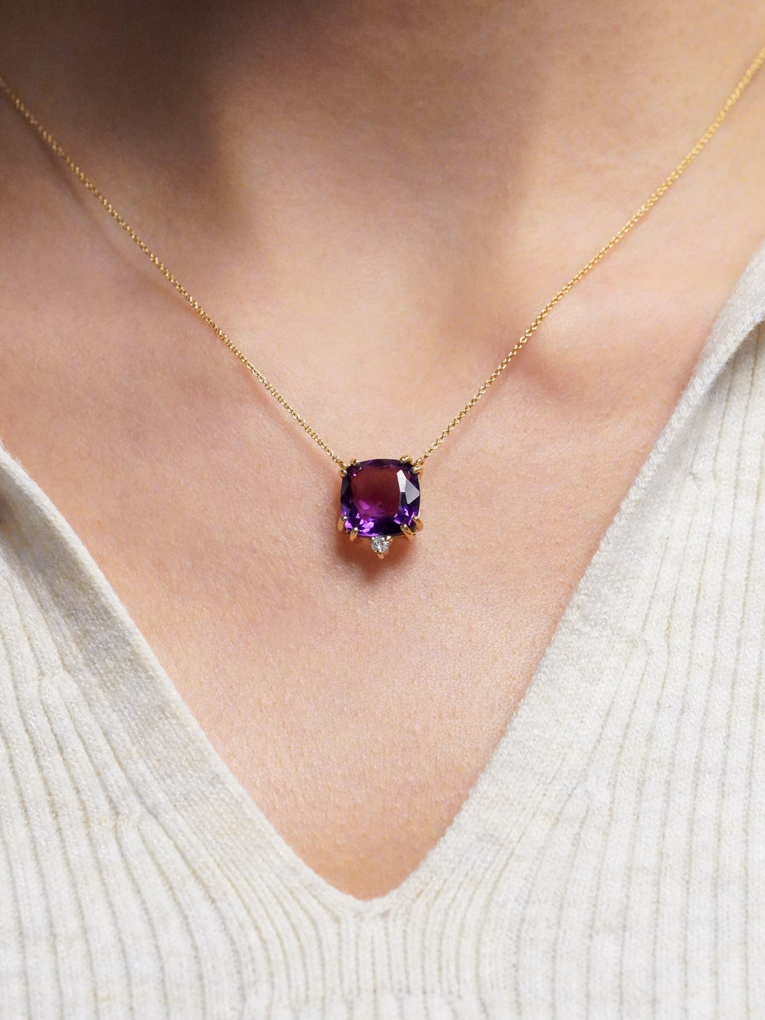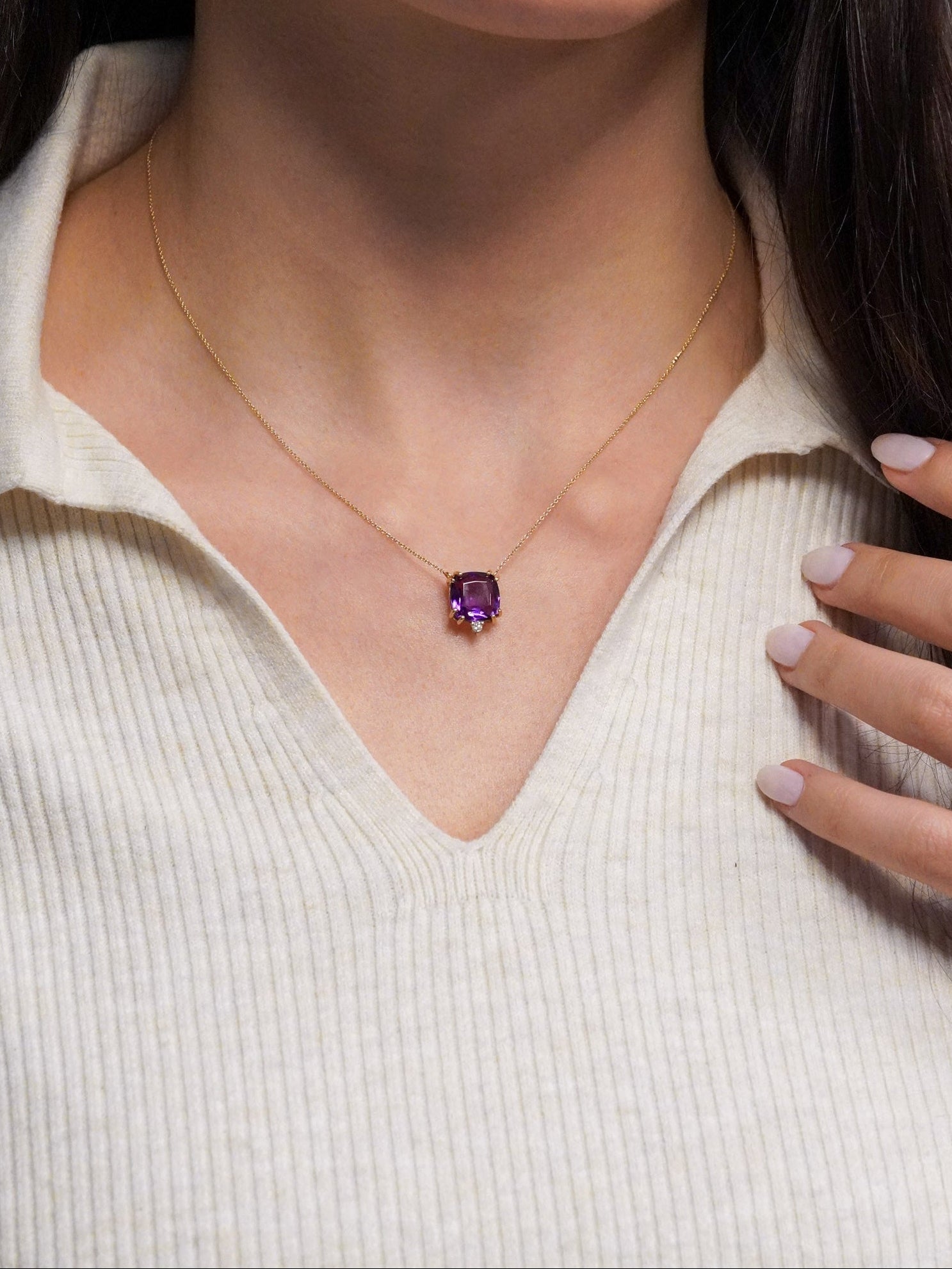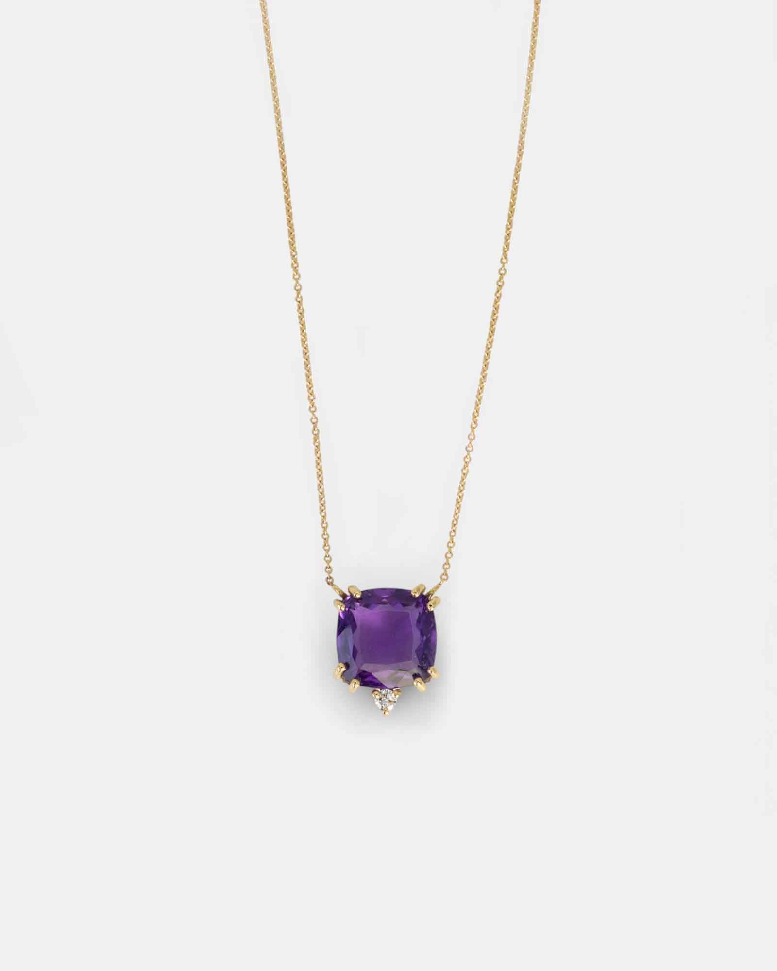 Una pietra inconfondibile e affascinante per il suo colore intenso e profondo, l'Ametista rappresenta la vera essenza del colore viola. Celebriamo la pietra del mese di Febbraio con le nostre creazioni che vogliono mettere in risalto il suo colore distintivo, che sia da solo o abbinato alla luce del diamante.