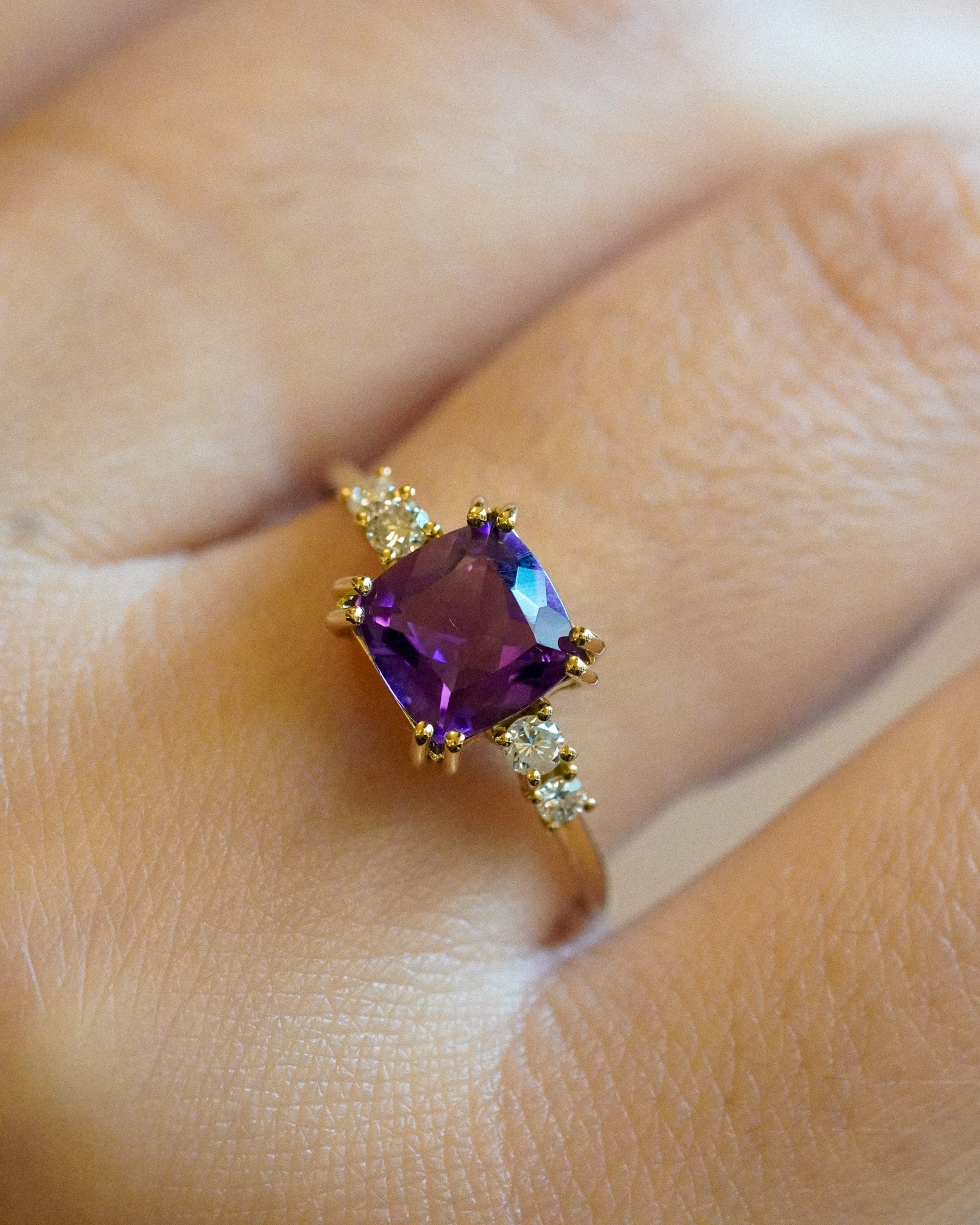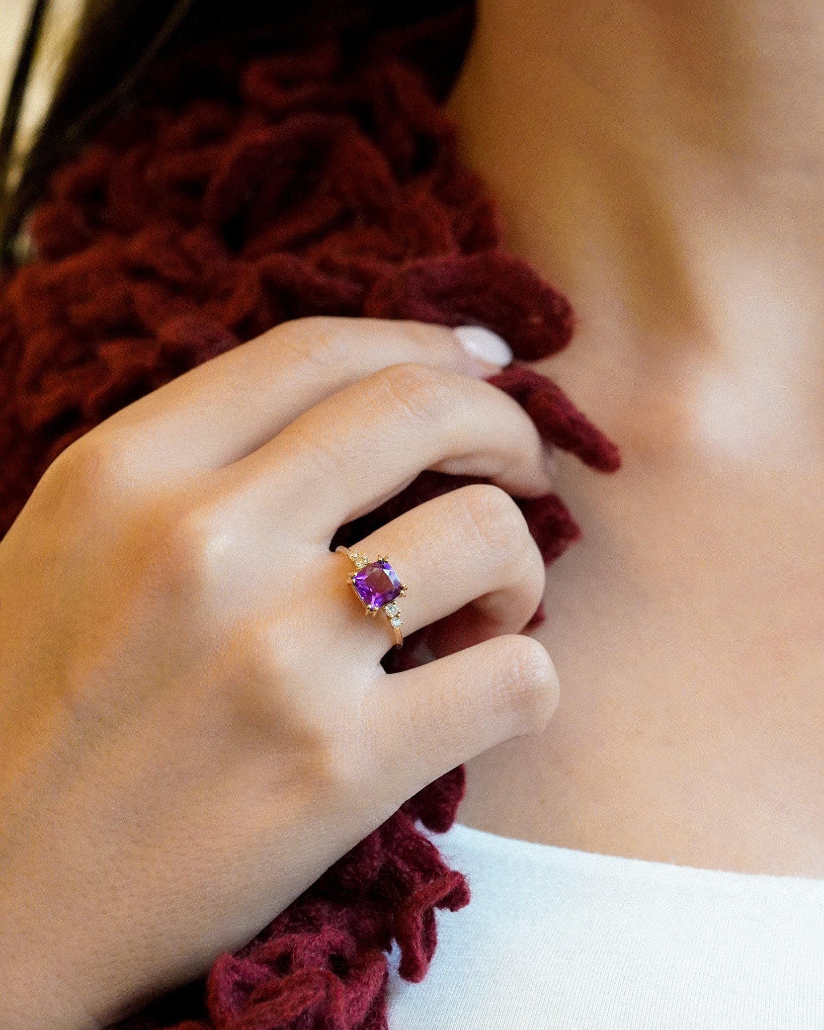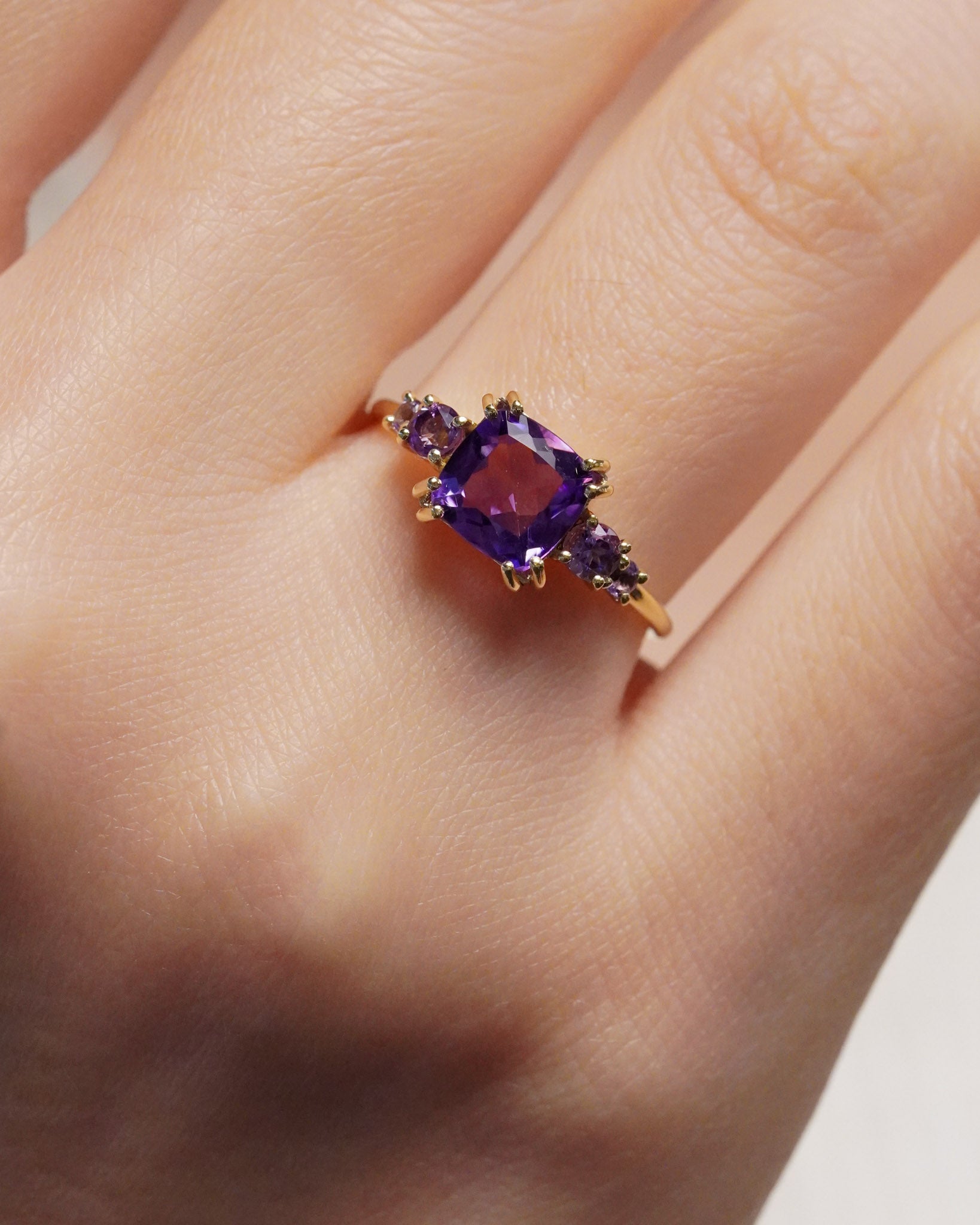 Una pietra inconfondibile e affascinante per il suo colore intenso e profondo, l'Ametista rappresenta la vera essenza del colore viola. Celebriamo la pietra del mese di Febbraio con le nostre creazioni che vogliono mettere in risalto il suo colore distintivo, che sia da solo o abbinato alla luce del diamante.