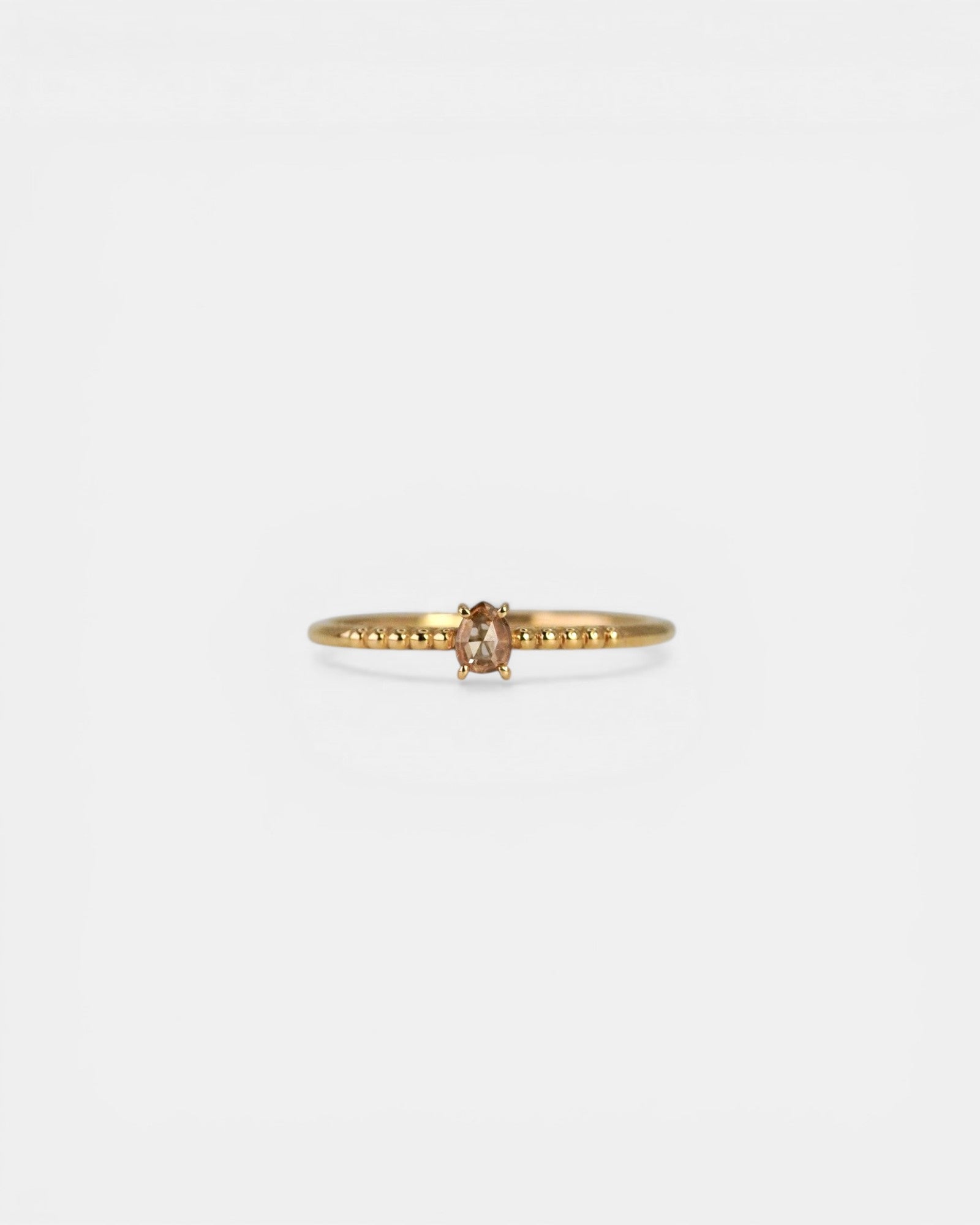 Anello con diamante champagne e gambo decorato con sfere