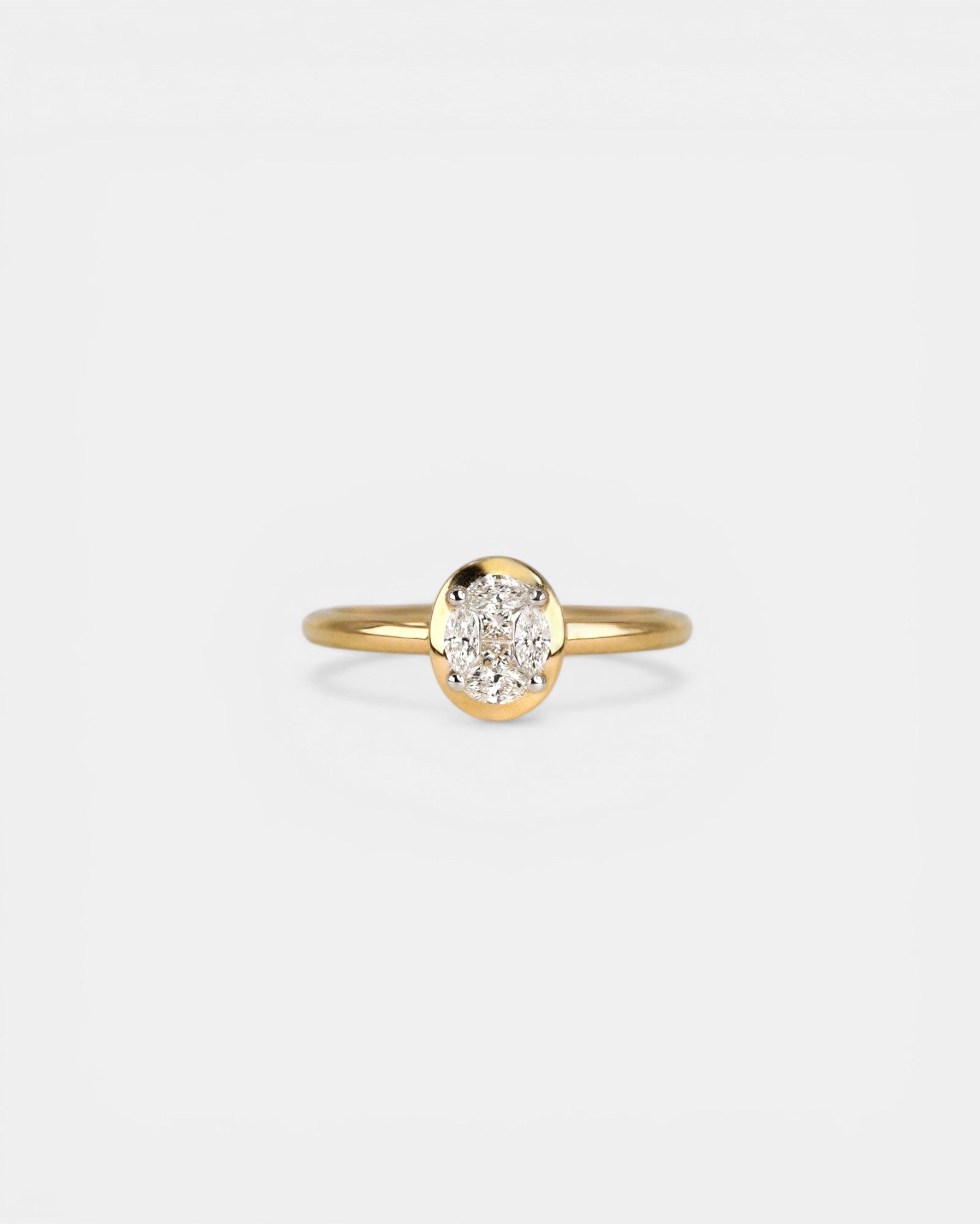 Anello in oro giallo con composizione di diamanti ovale