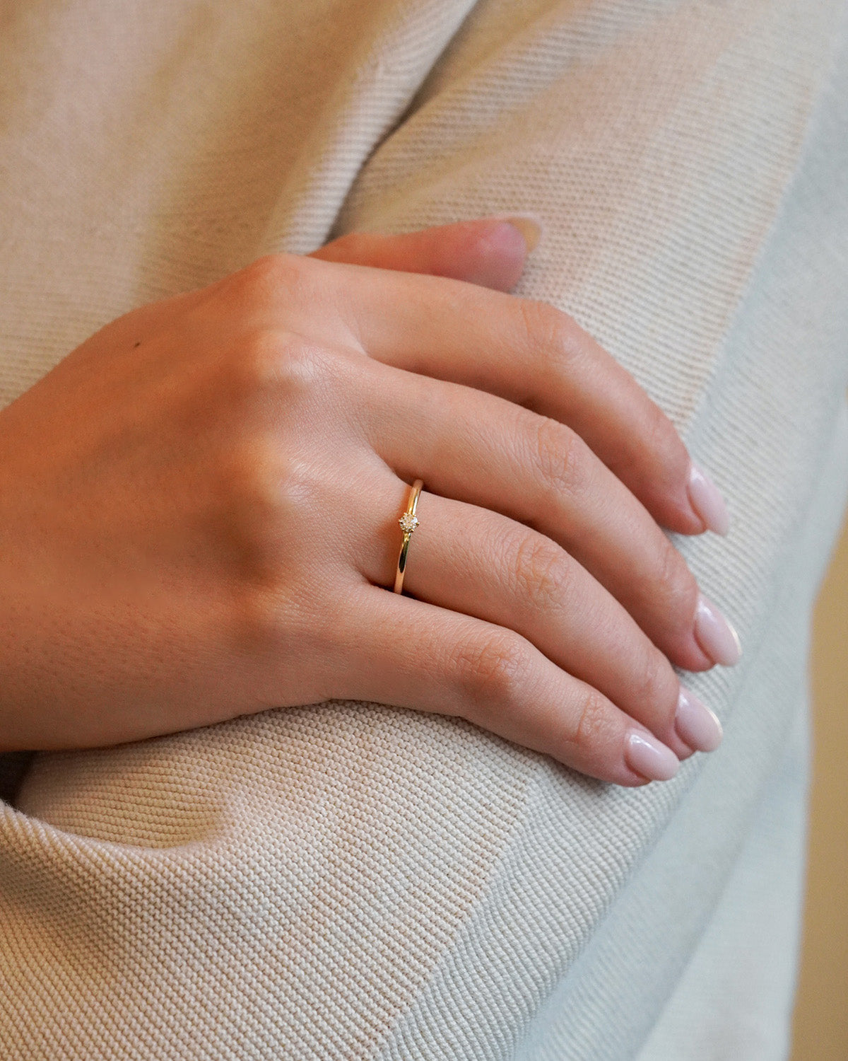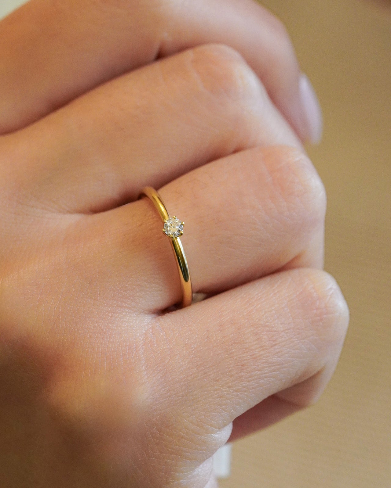 Anello solitario in oro giallo con diamante taglio brillante