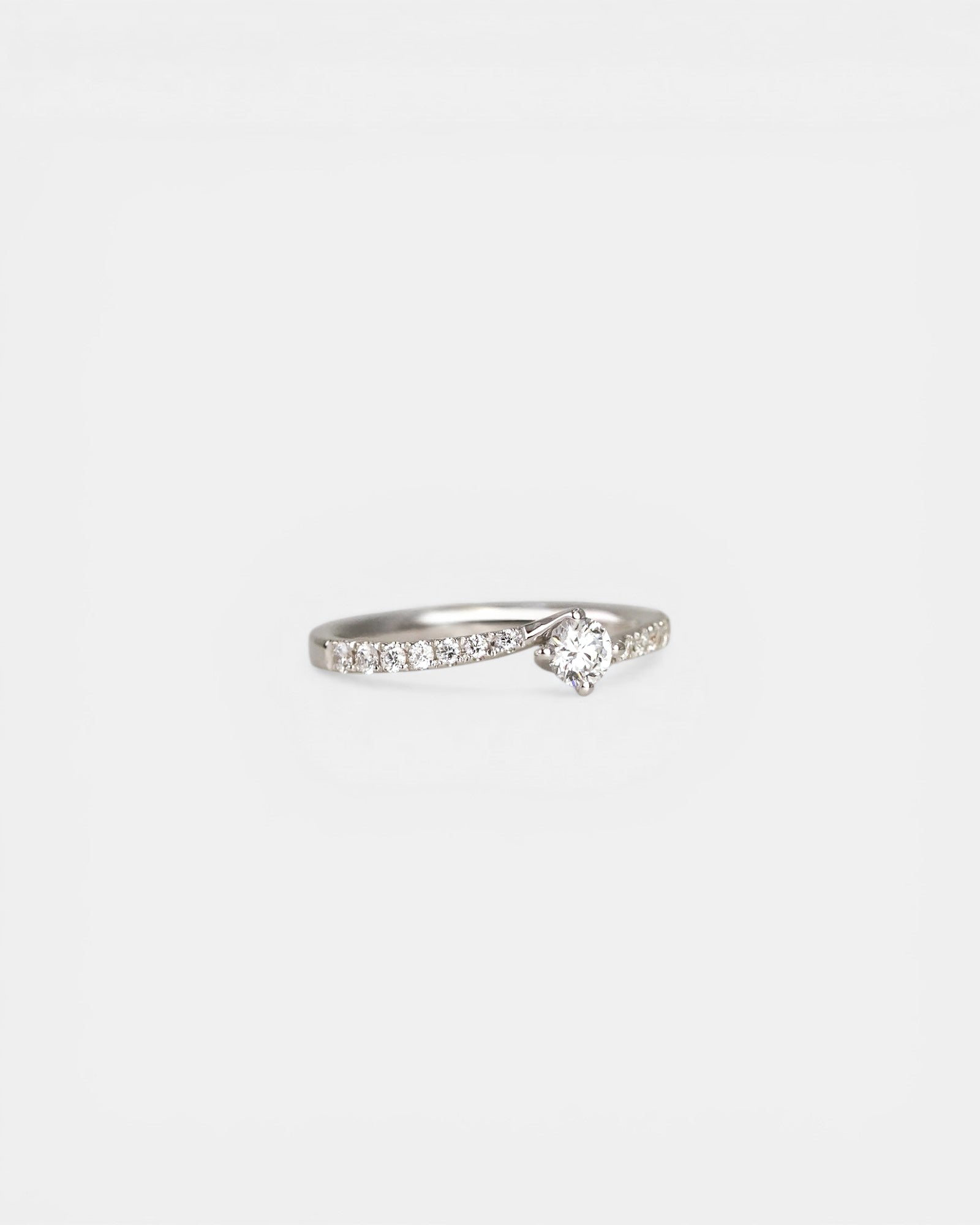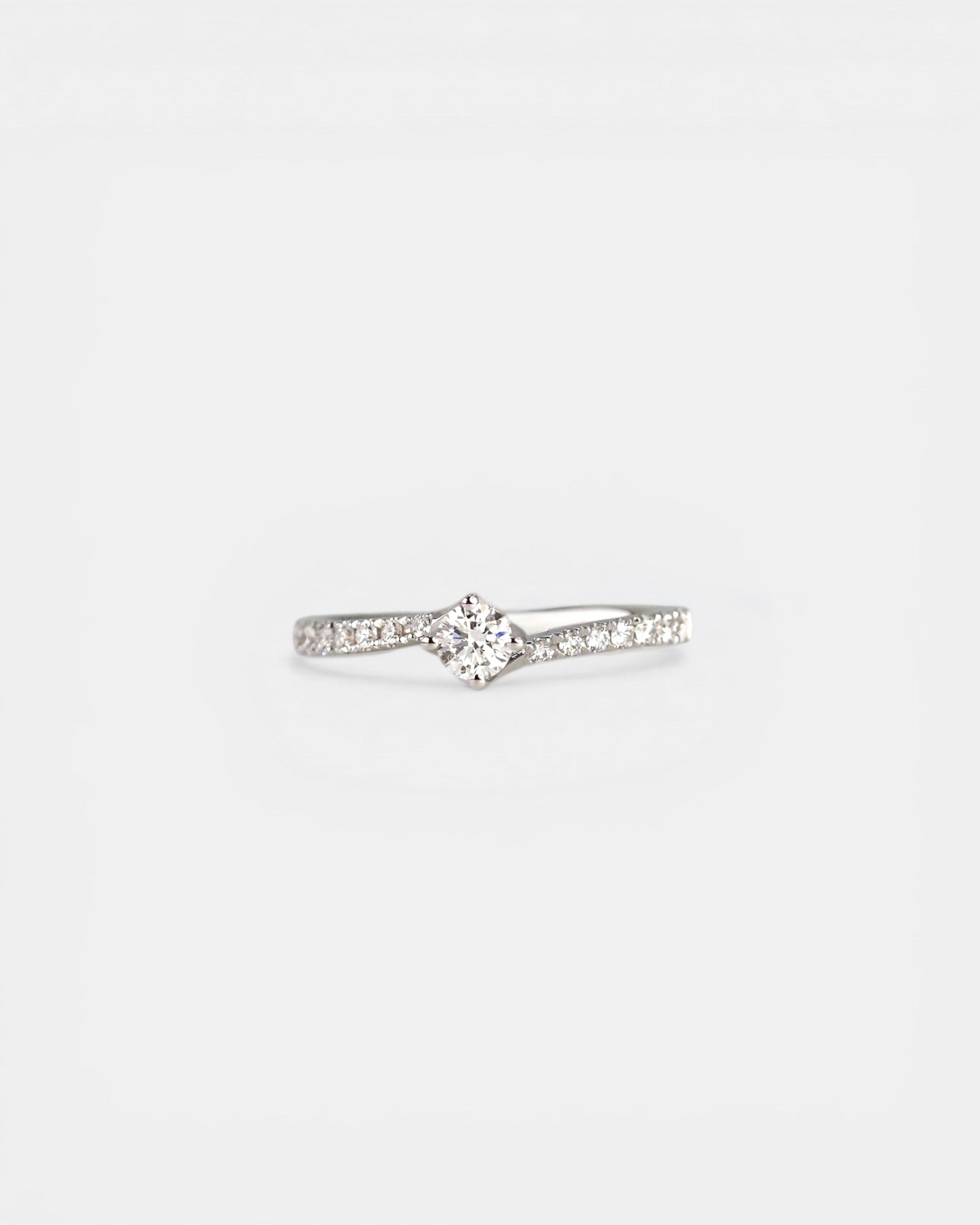 Anello solitario in oro bianco con gambo a incrocio