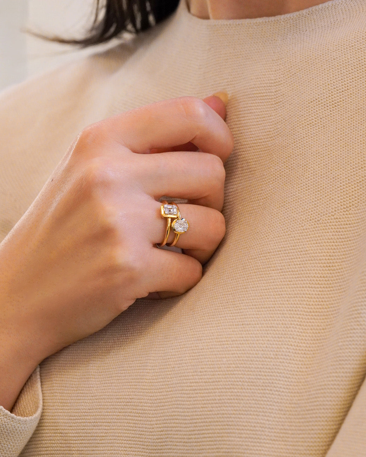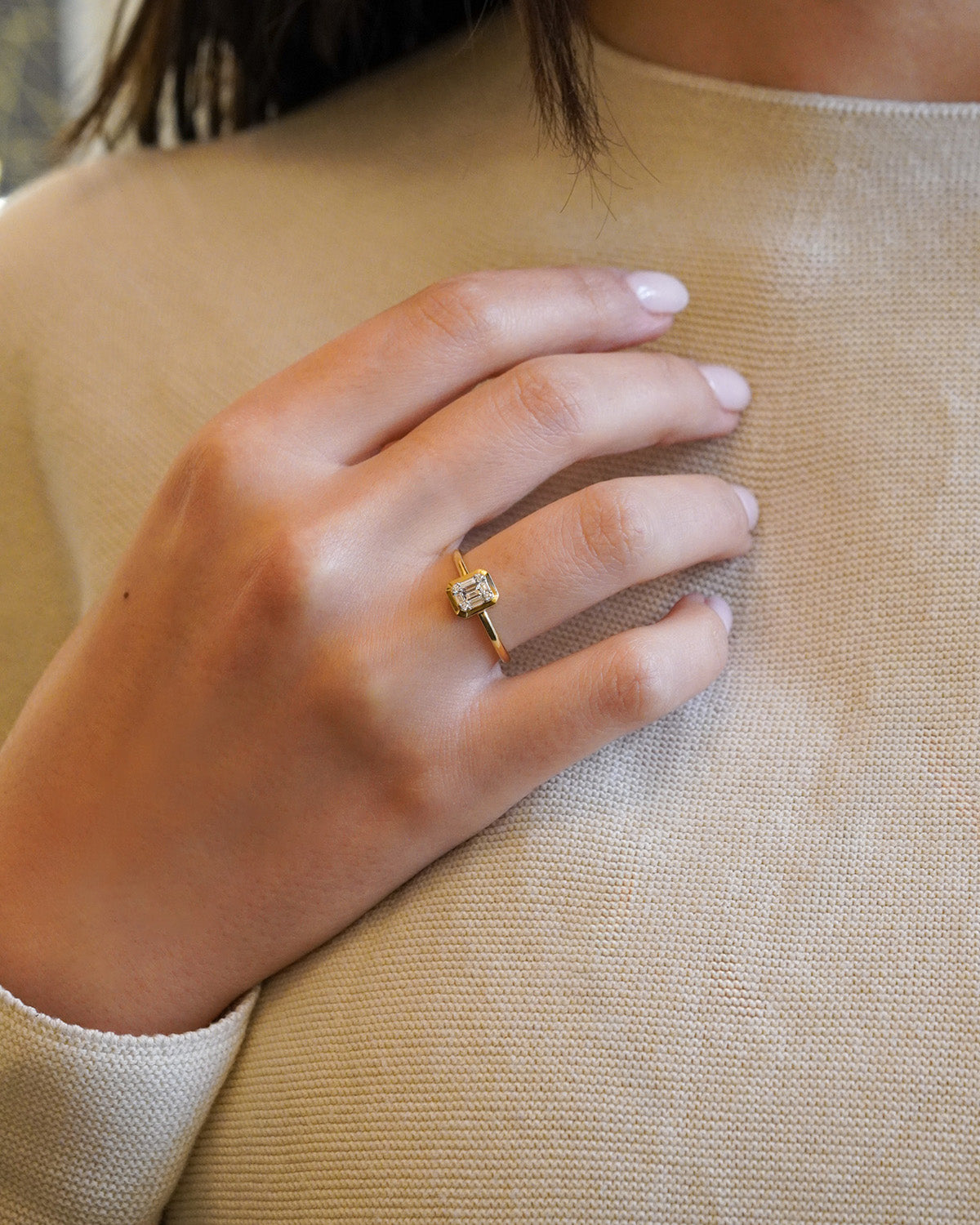 Anello in oro giallo con diamante champagne e castone a cuscino
