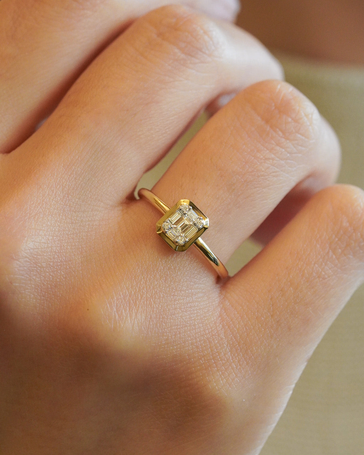 Anello in oro giallo con composizione di diamanti rettangolare