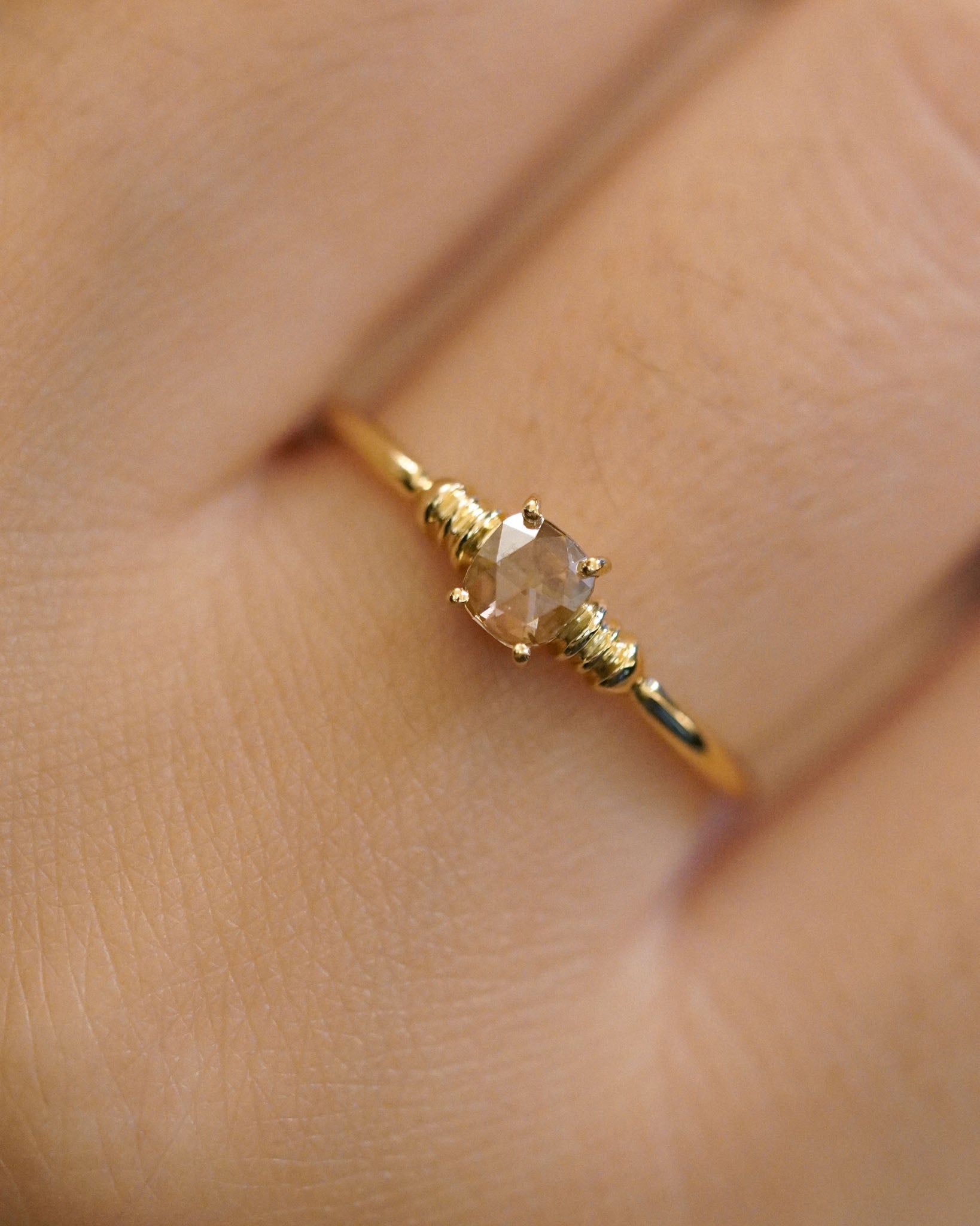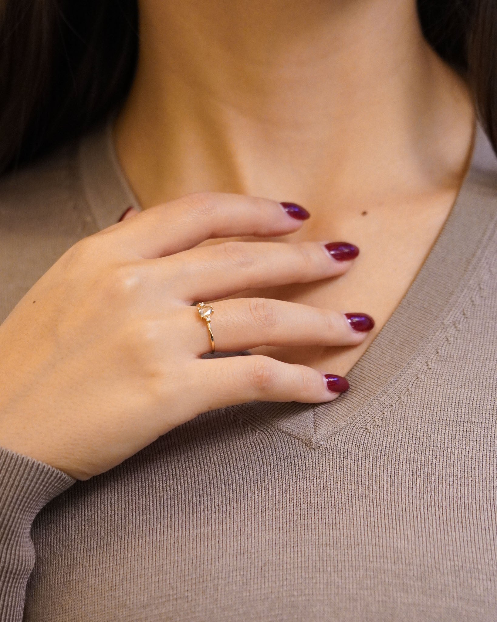 Scopri la bellezza unica dei diamanti champagne protagonisti di questi anelli in oro giallo, scelti per la loro luce calda e naturale. Ogni anello è realizzato artigianalmente in oro 18 carati e impreziosito da un diamante taglio rosetta dalle sfumature uniche. Un’eleganza luminosa da indossare ogni giorno.