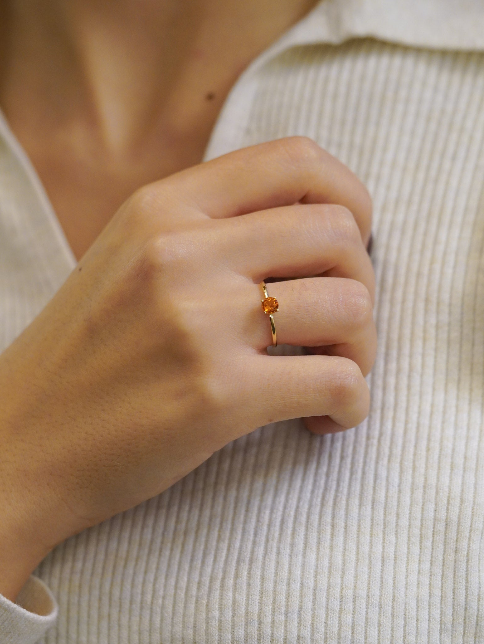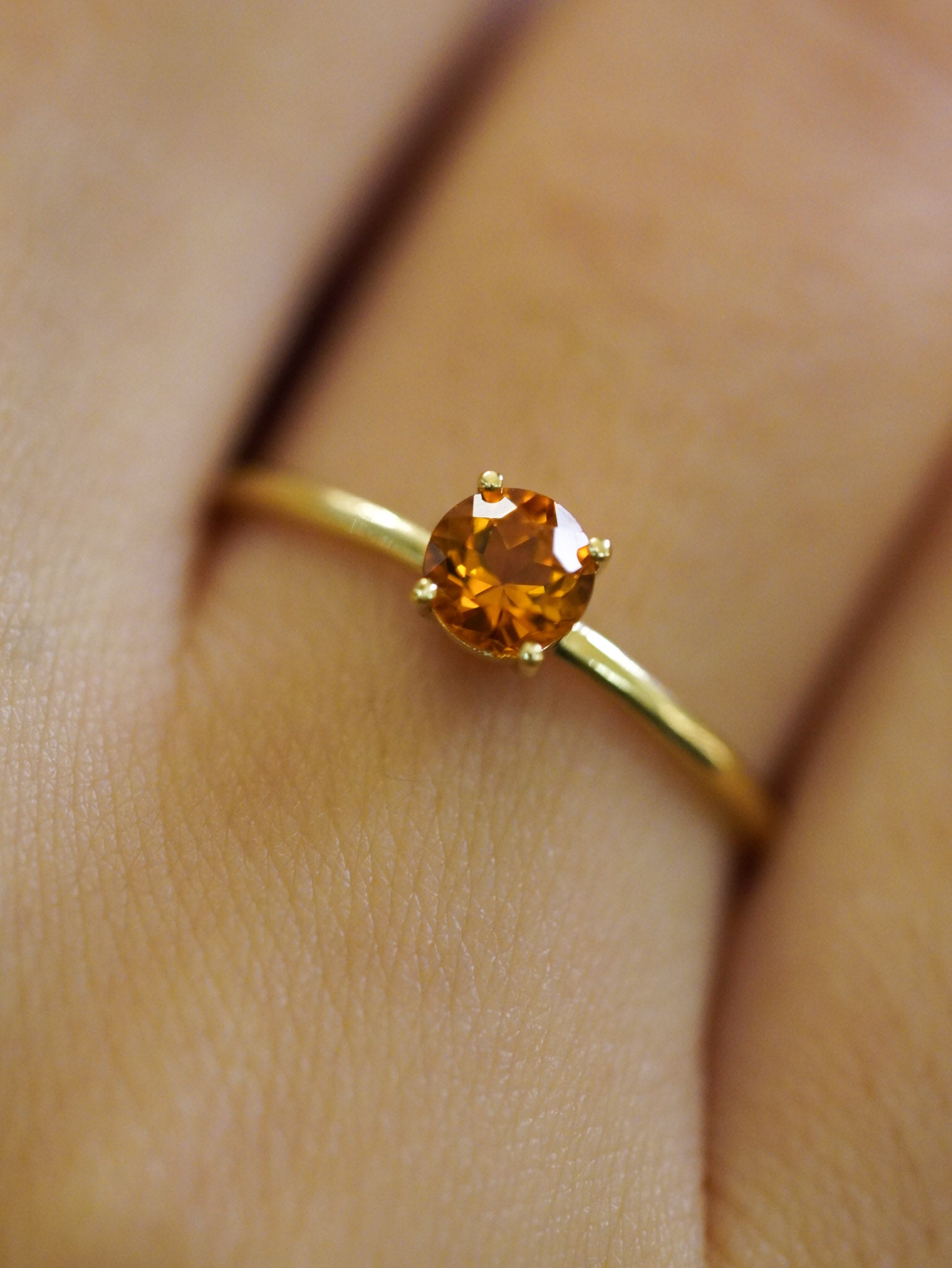 Anello in oro giallo con cinque pietre a gradiente - Quarzo Madera