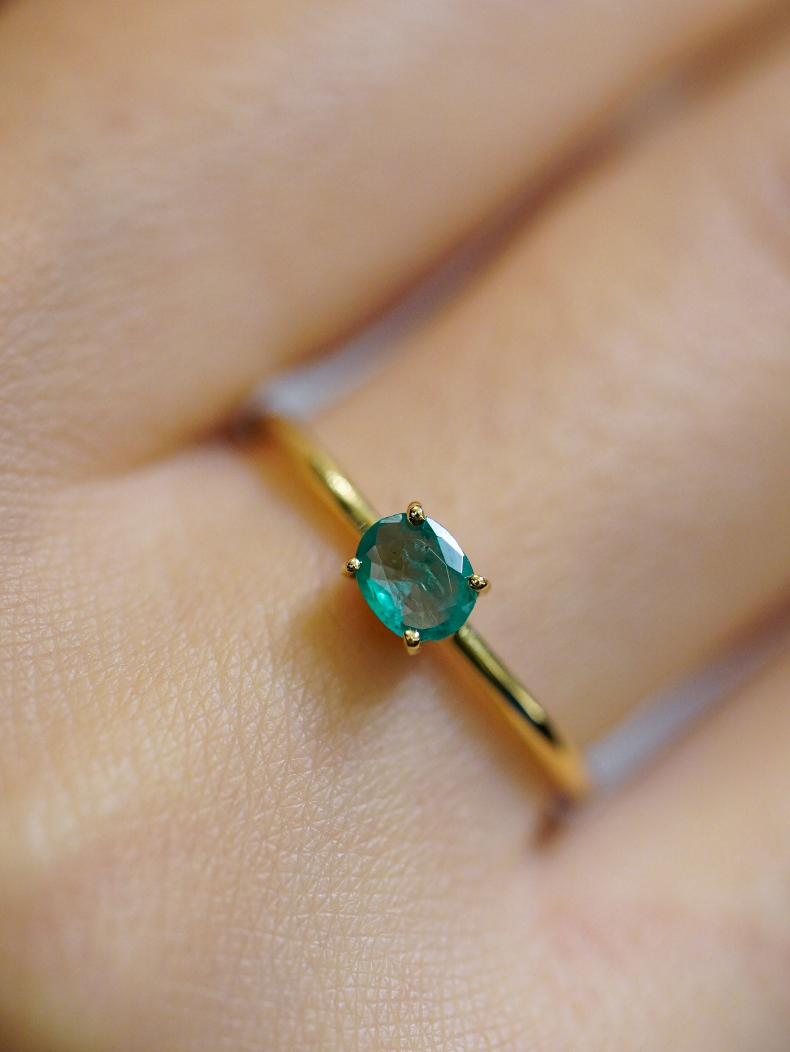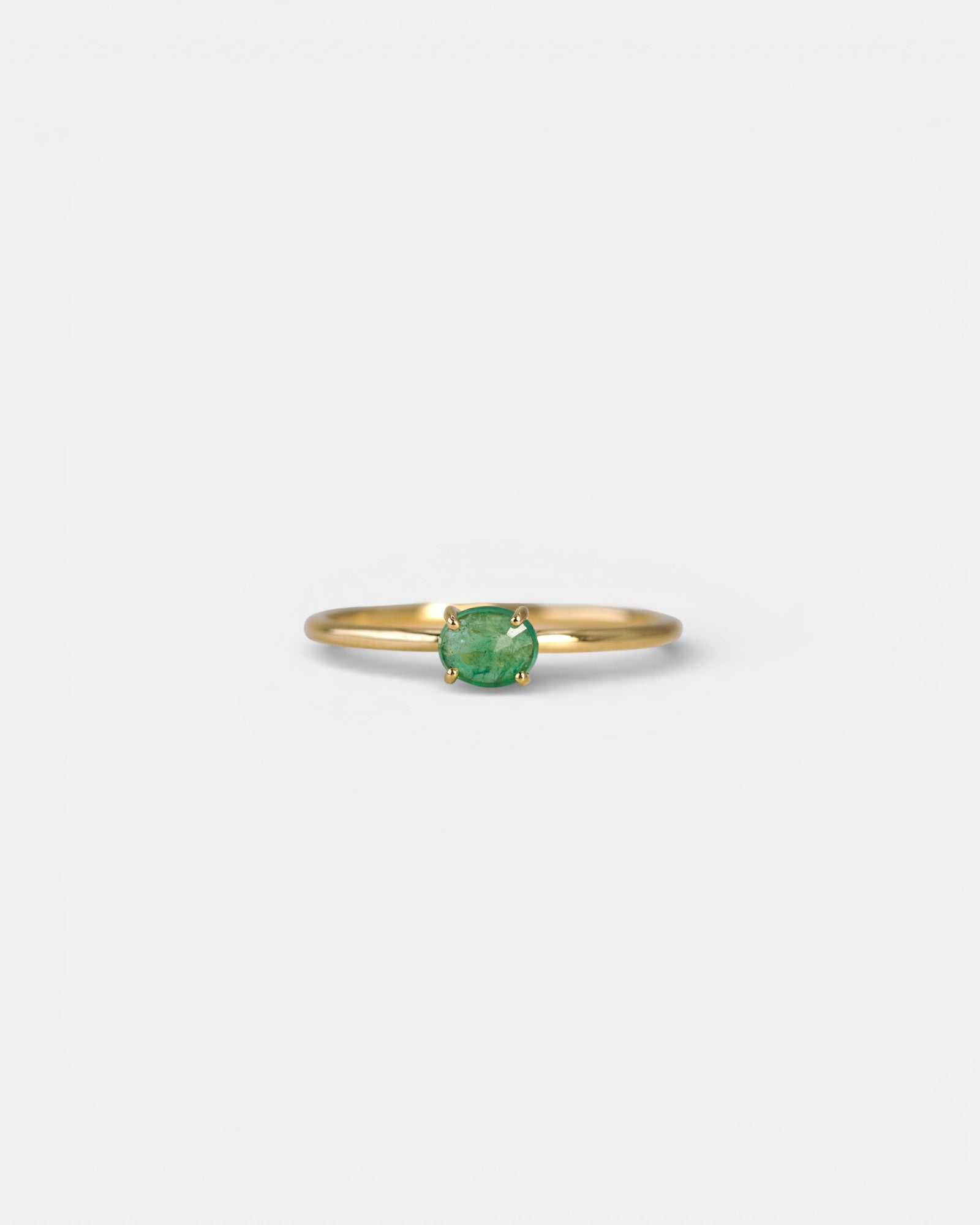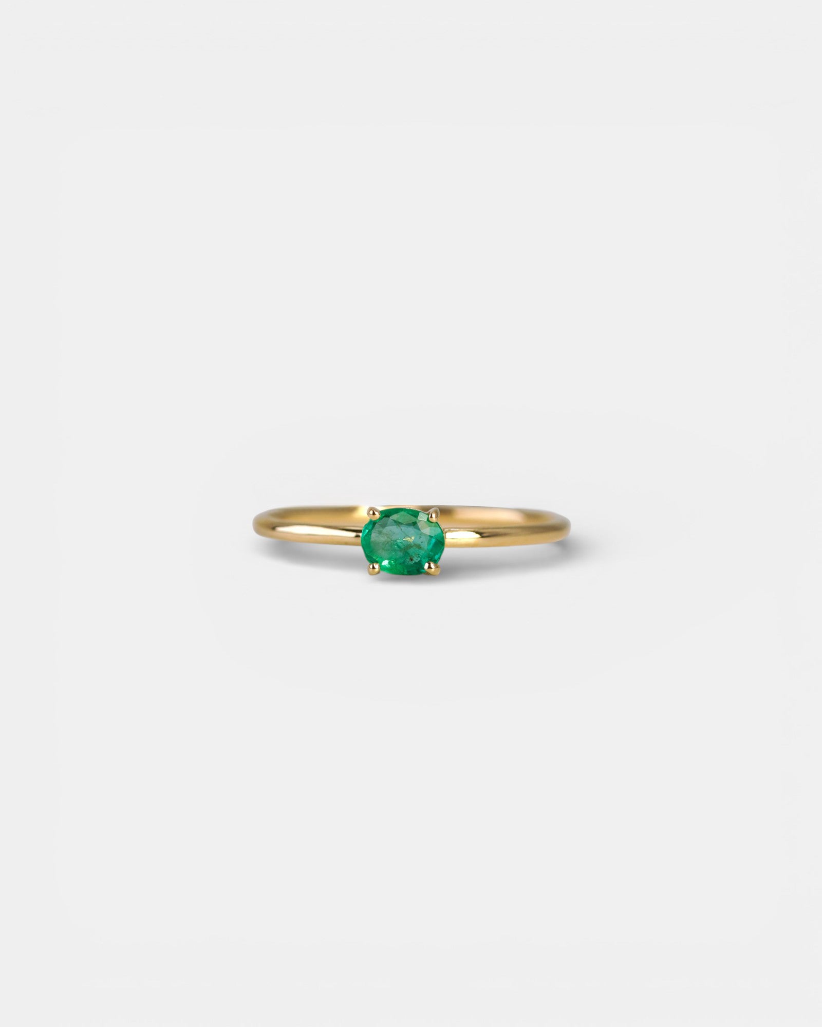 Anello in oro giallo con smeraldo ovale orizzontale