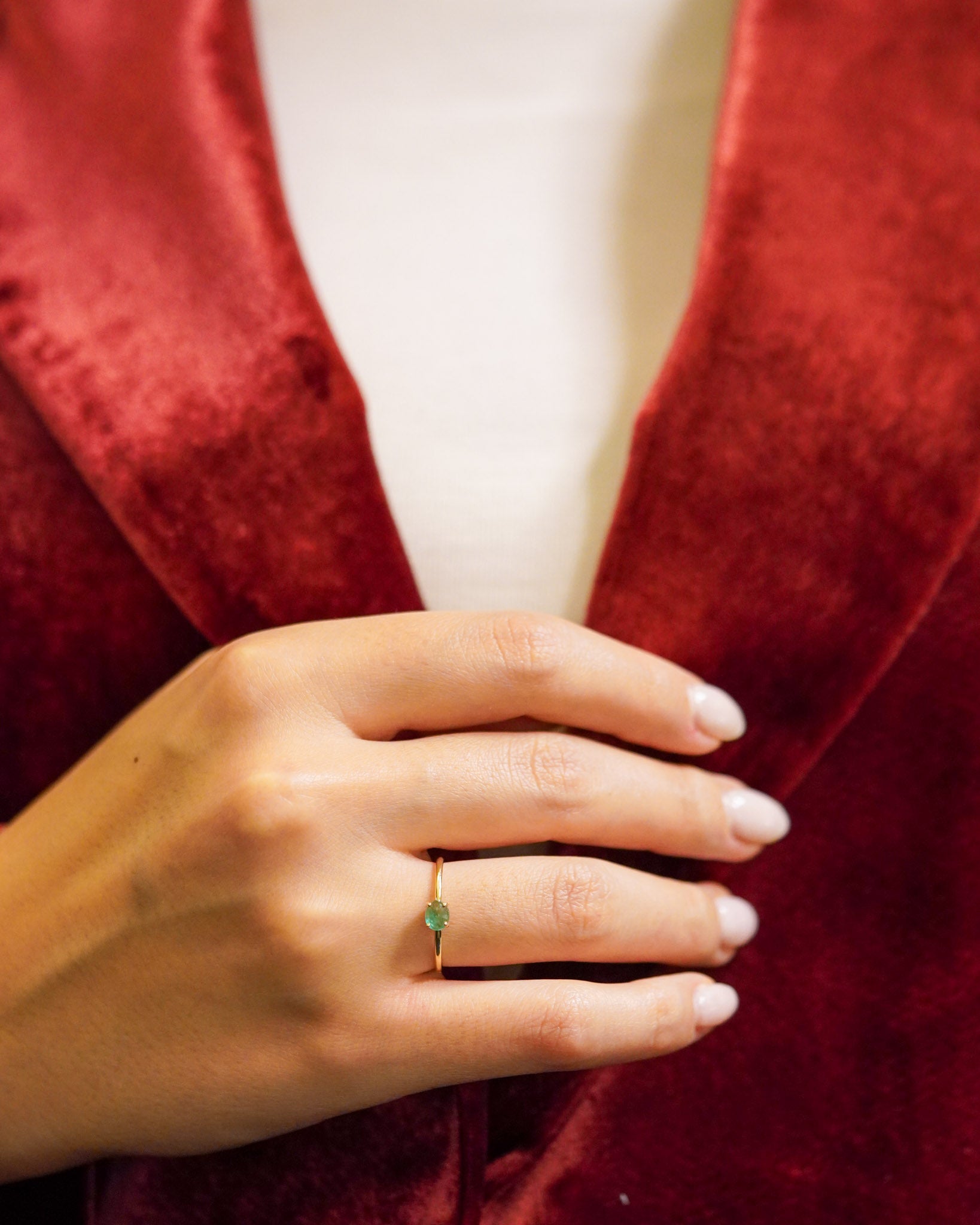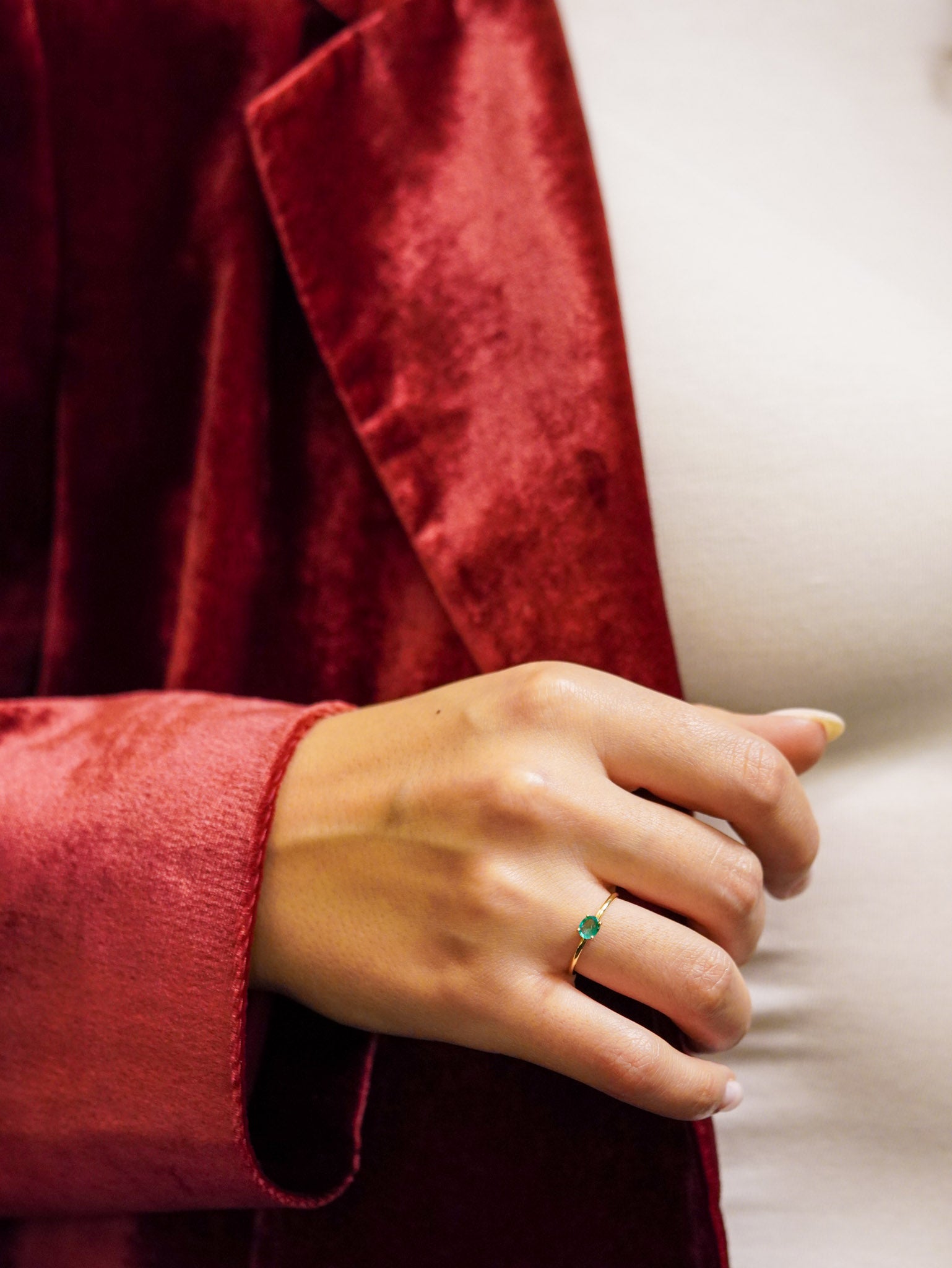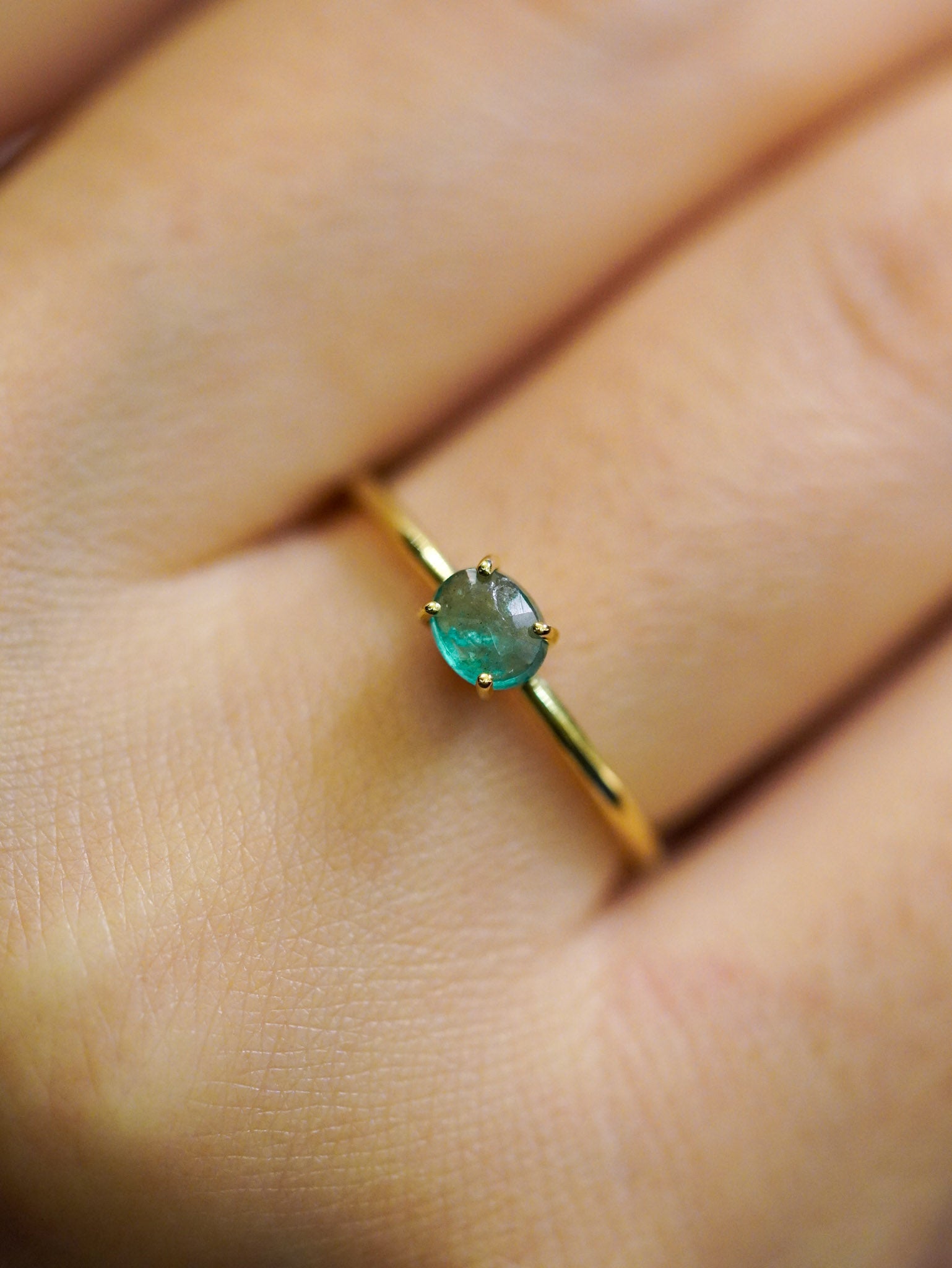 Anello in oro giallo con smeraldo ovale orizzontale