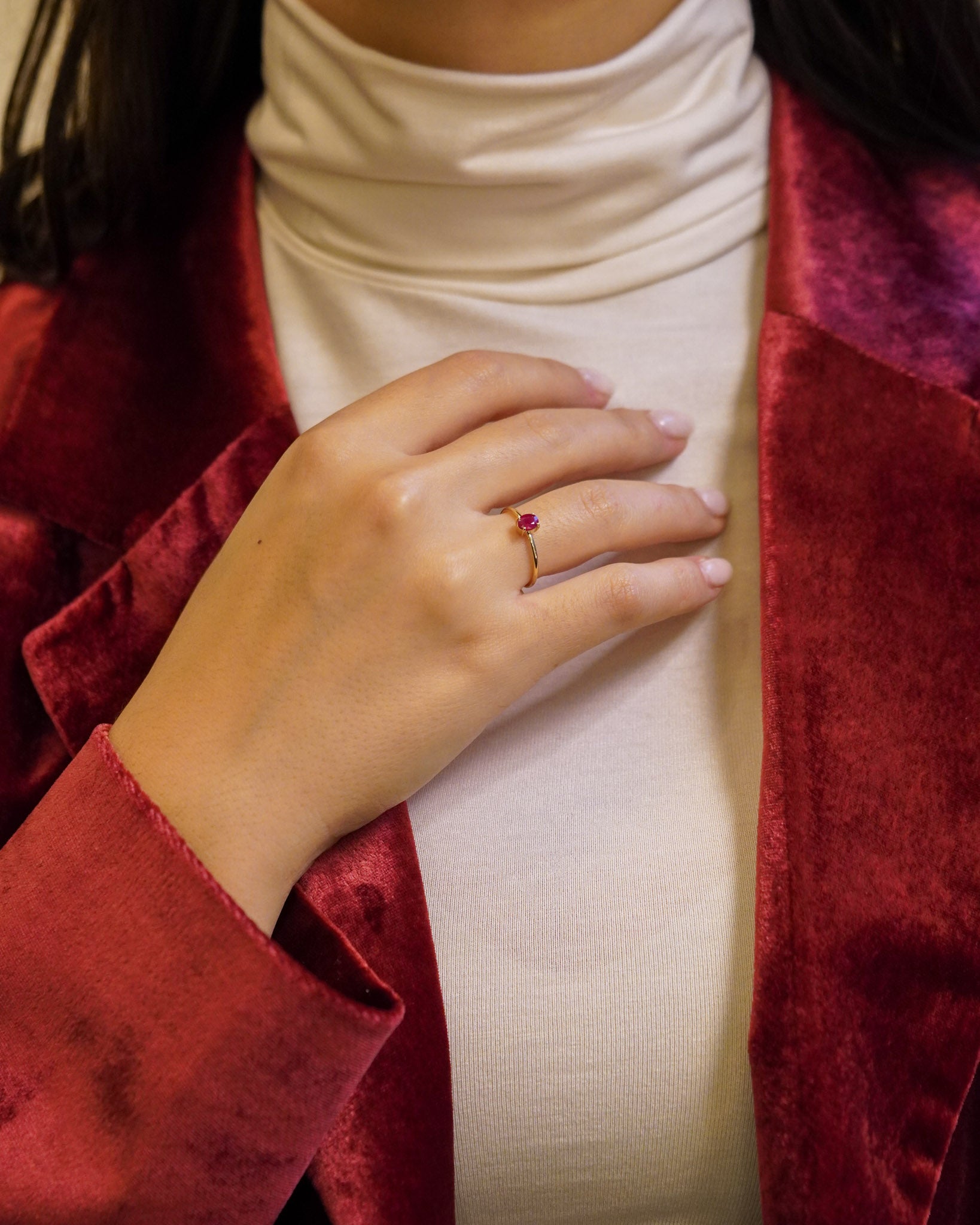 Anello in oro giallo con rubino ovale verticale