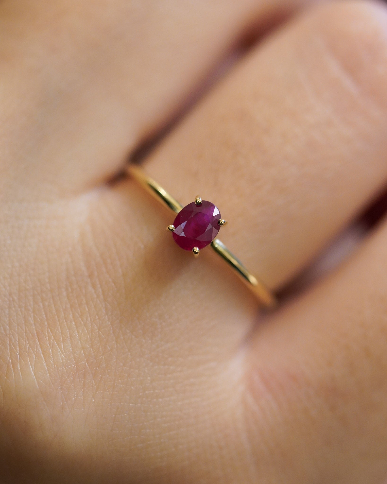 Anello in oro giallo con rubino ovale orizzontale