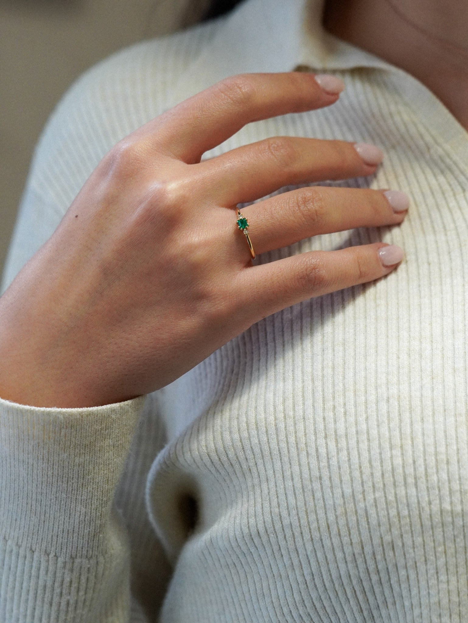 Anello con smeraldo quadrato e diamanti bianchi