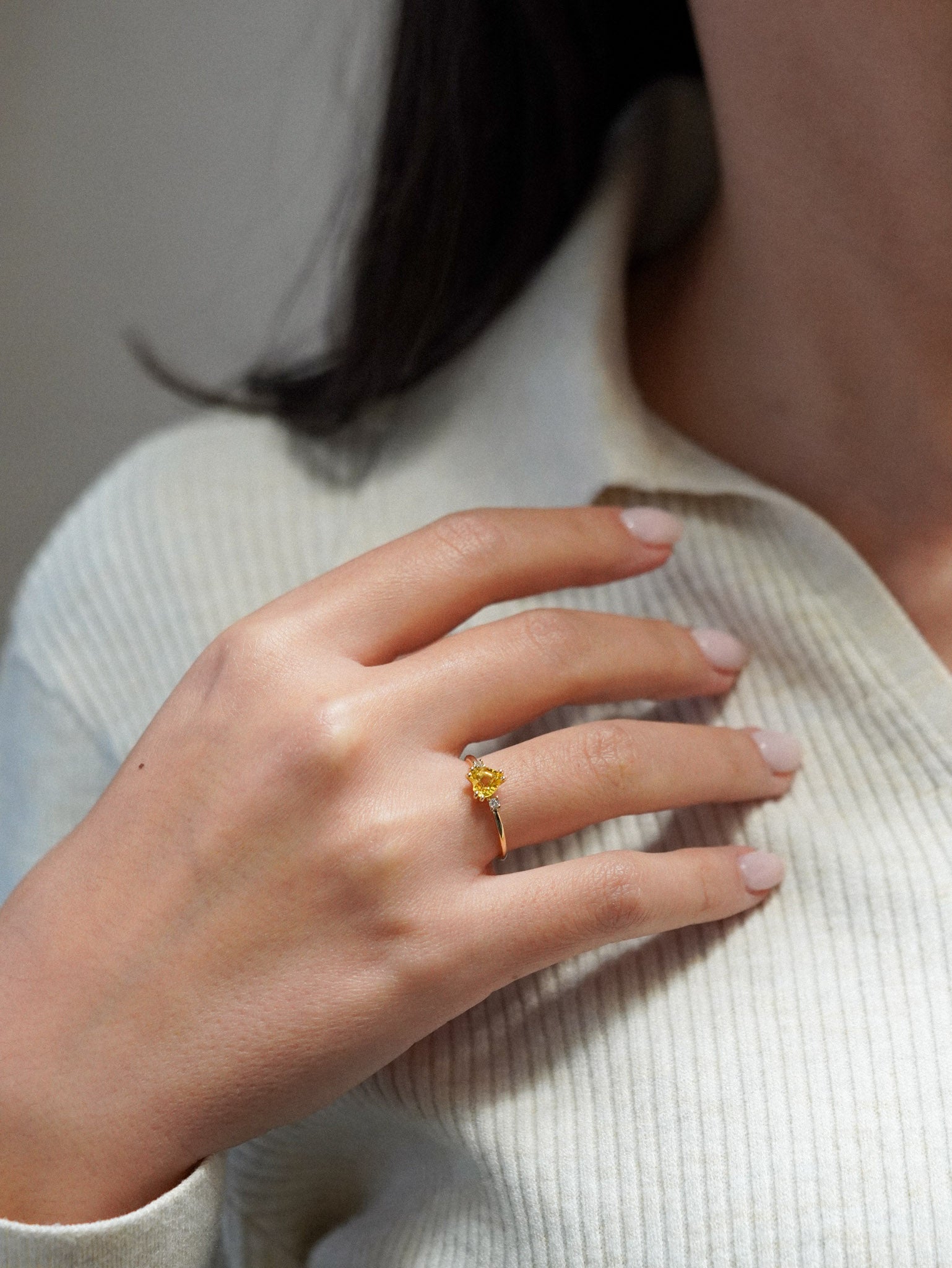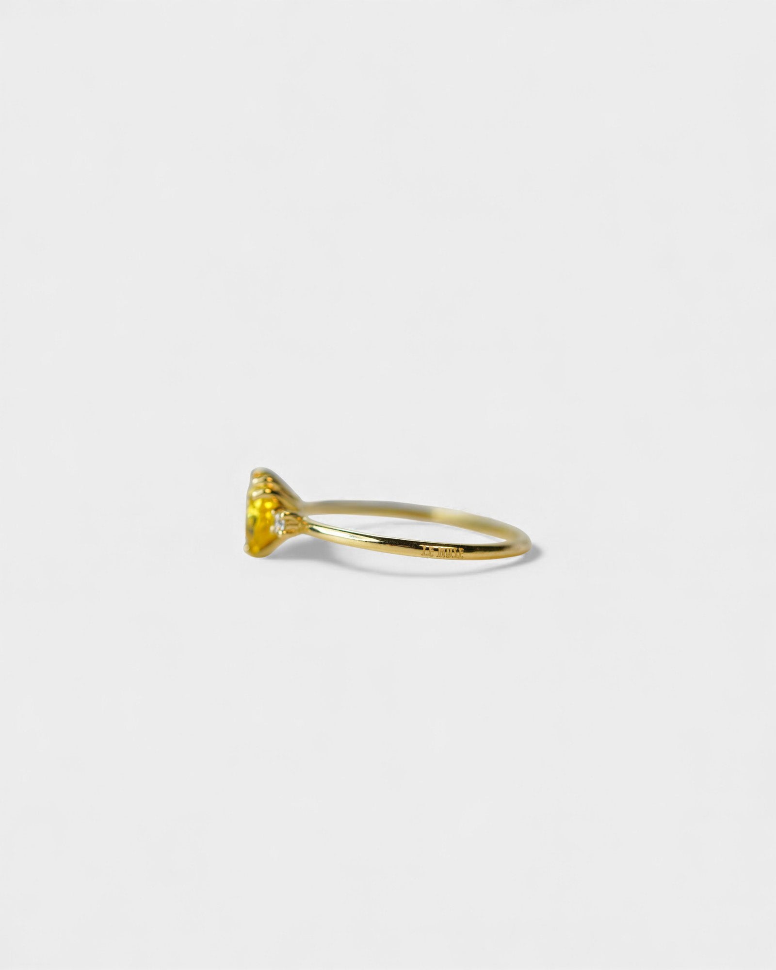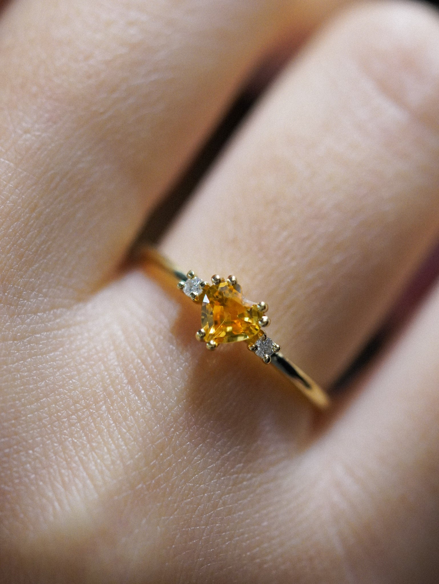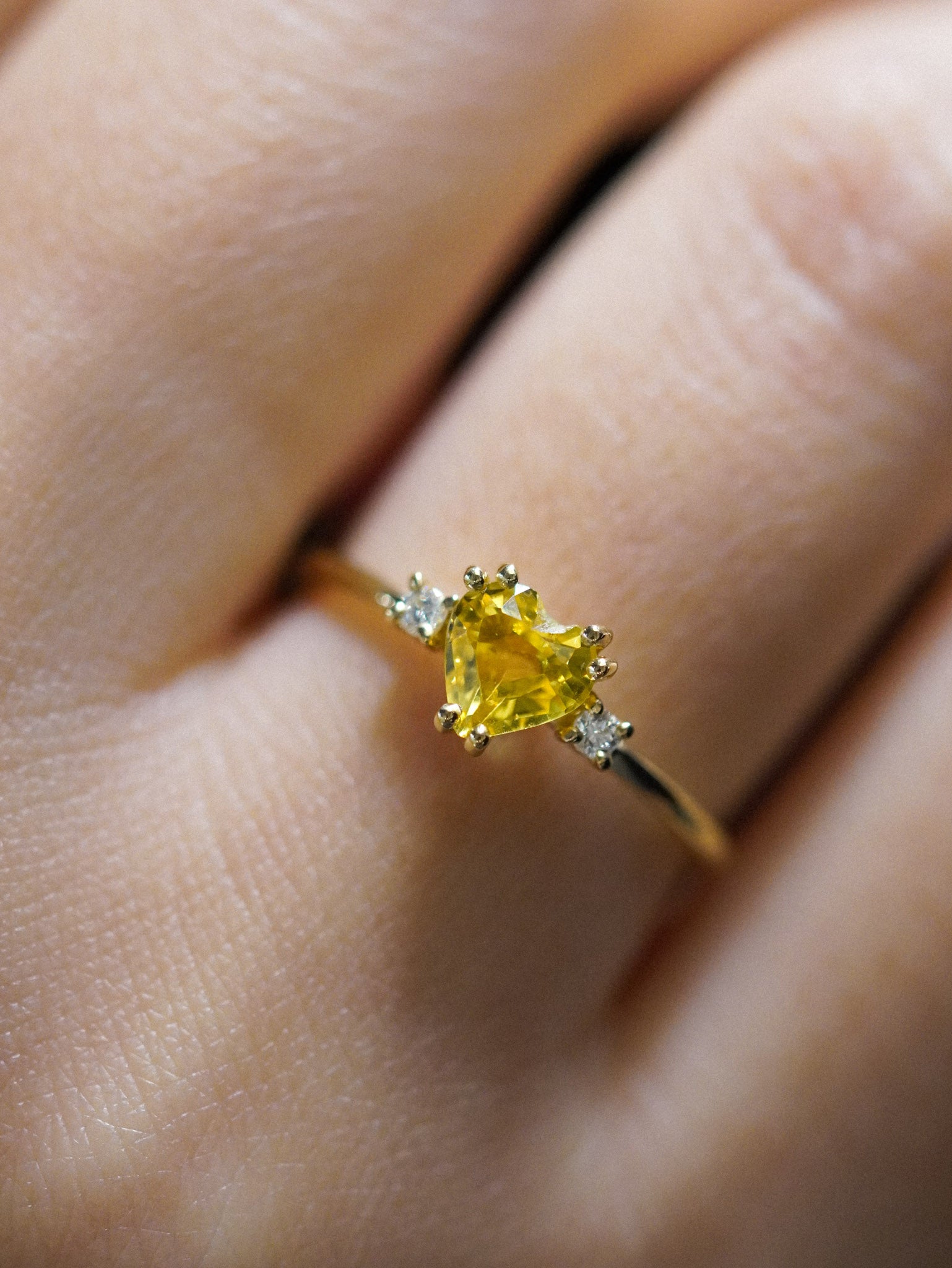 Anello in oro giallo con zaffiro giallo a cuore e due diamanti bianchi