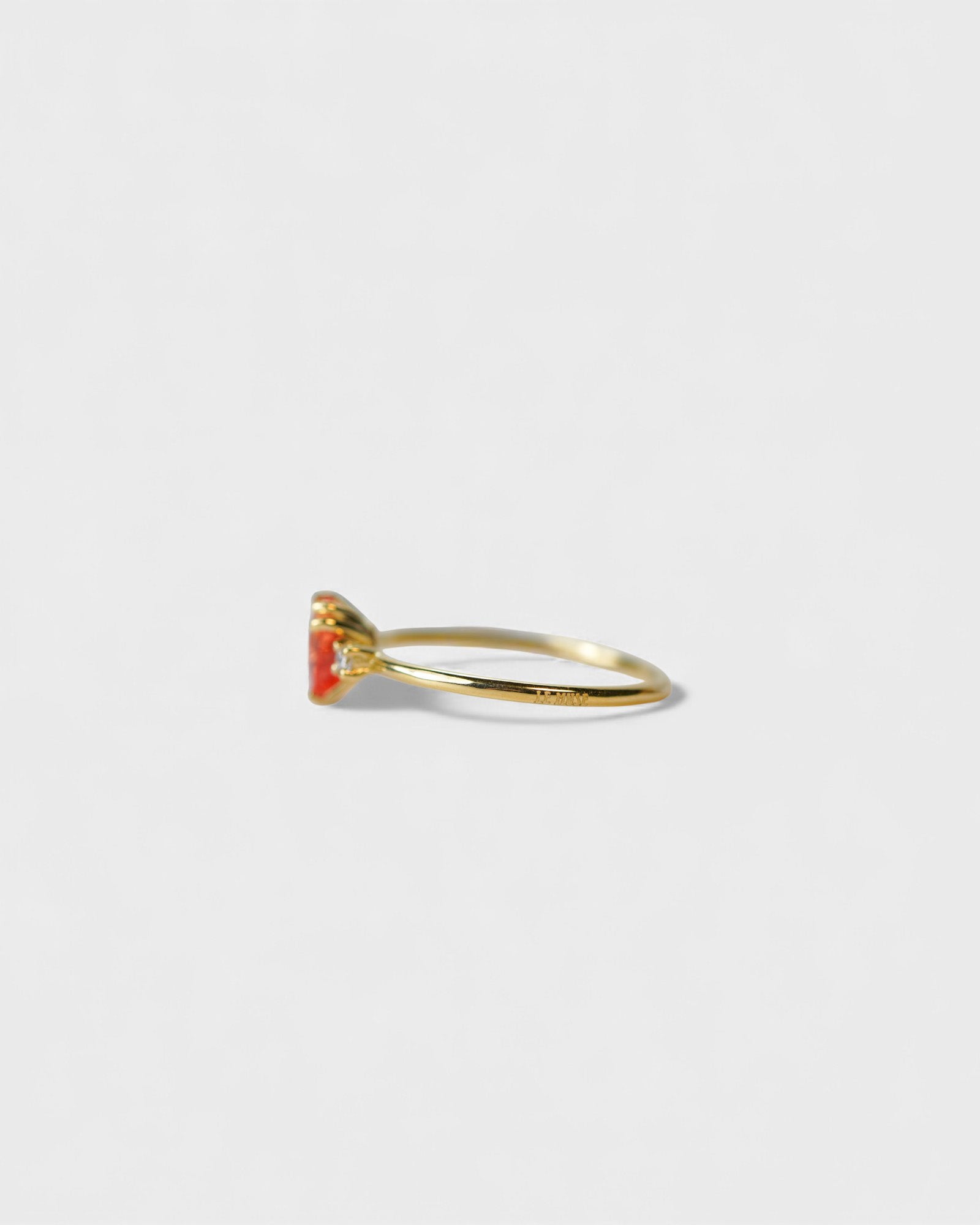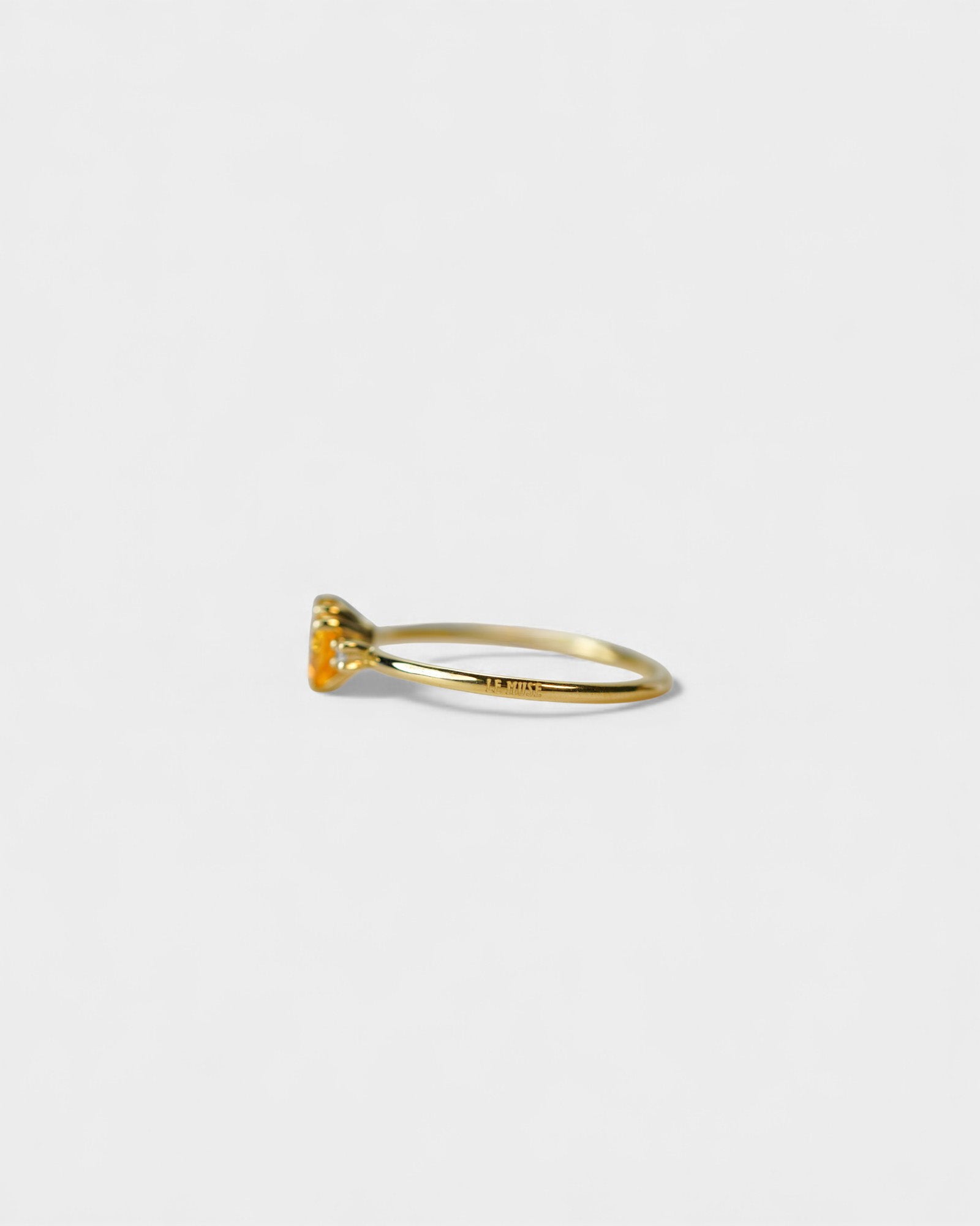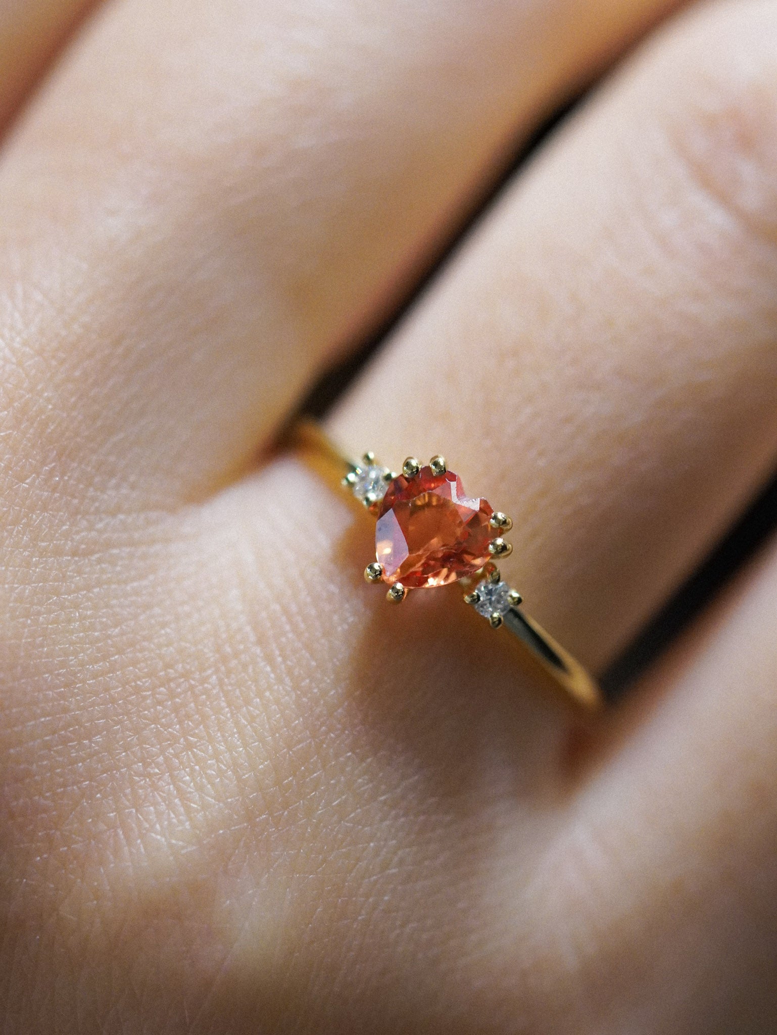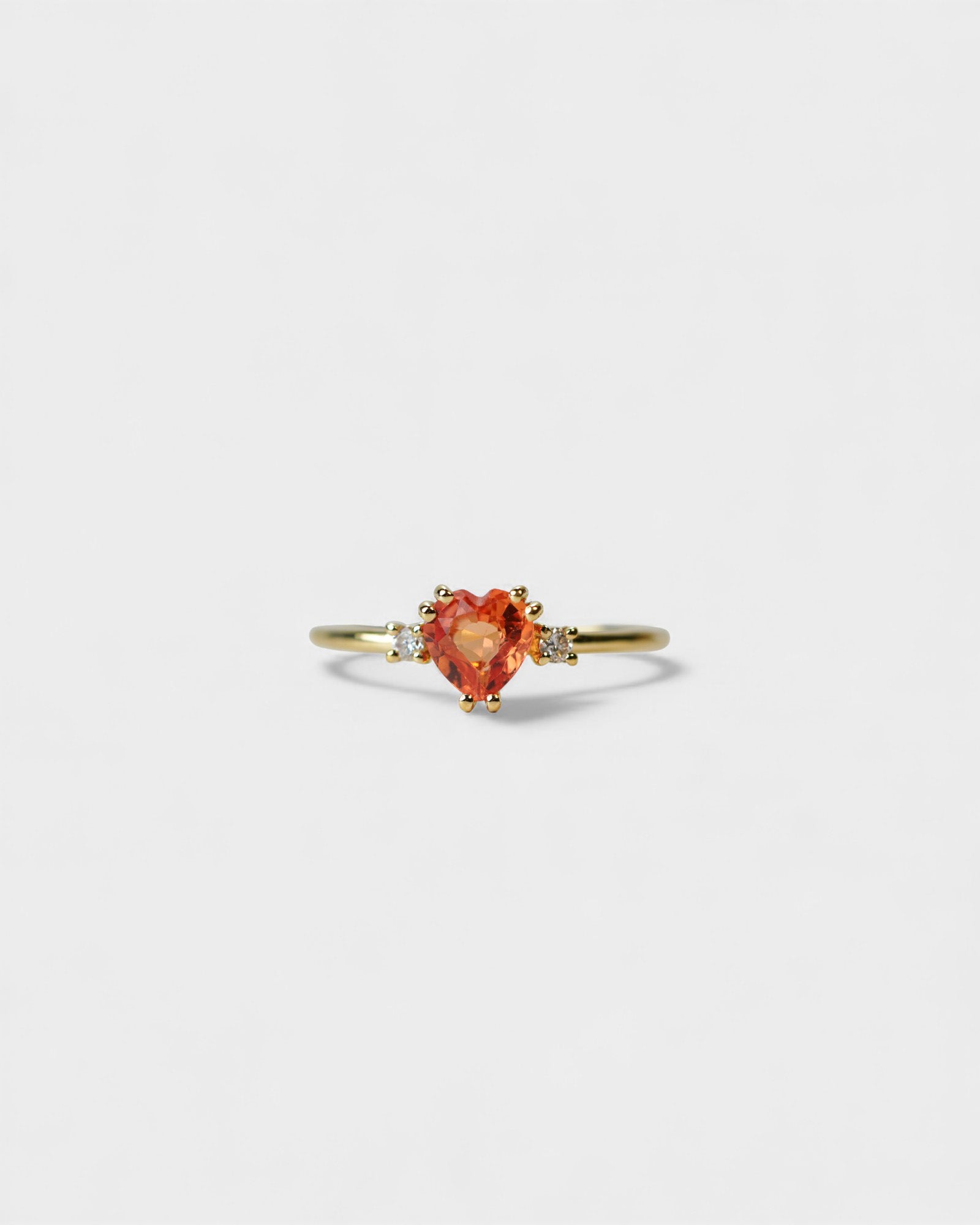 Anello in oro giallo con zaffiro arancio a cuore e due diamanti bianchi