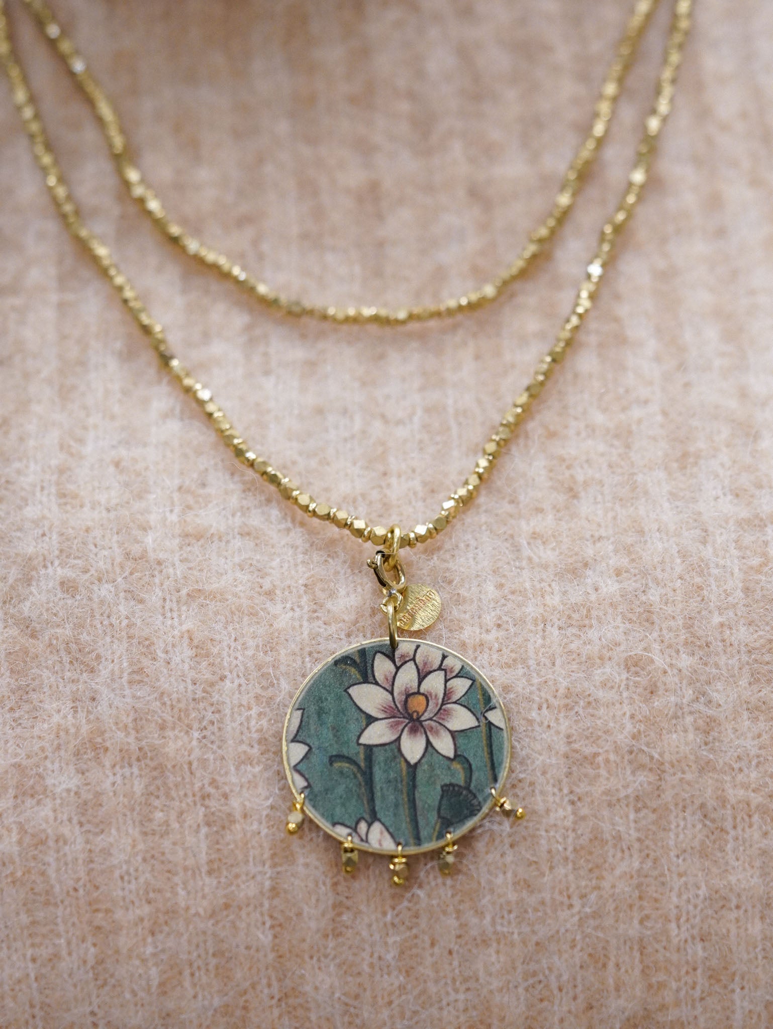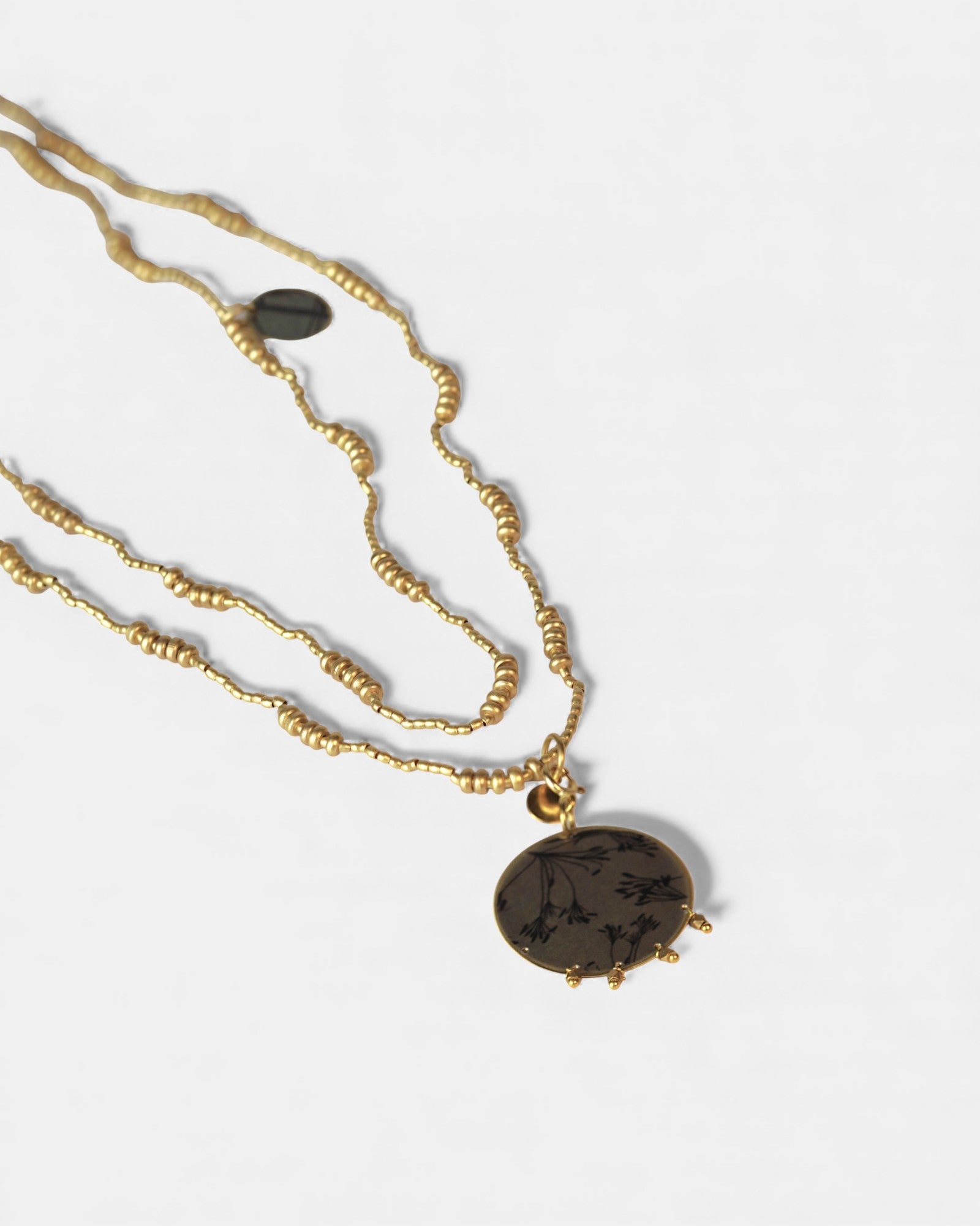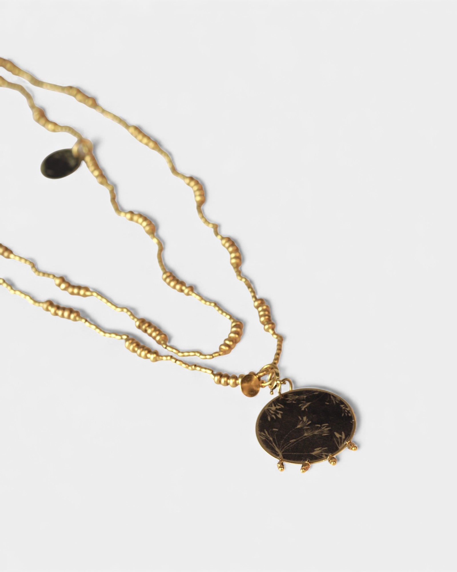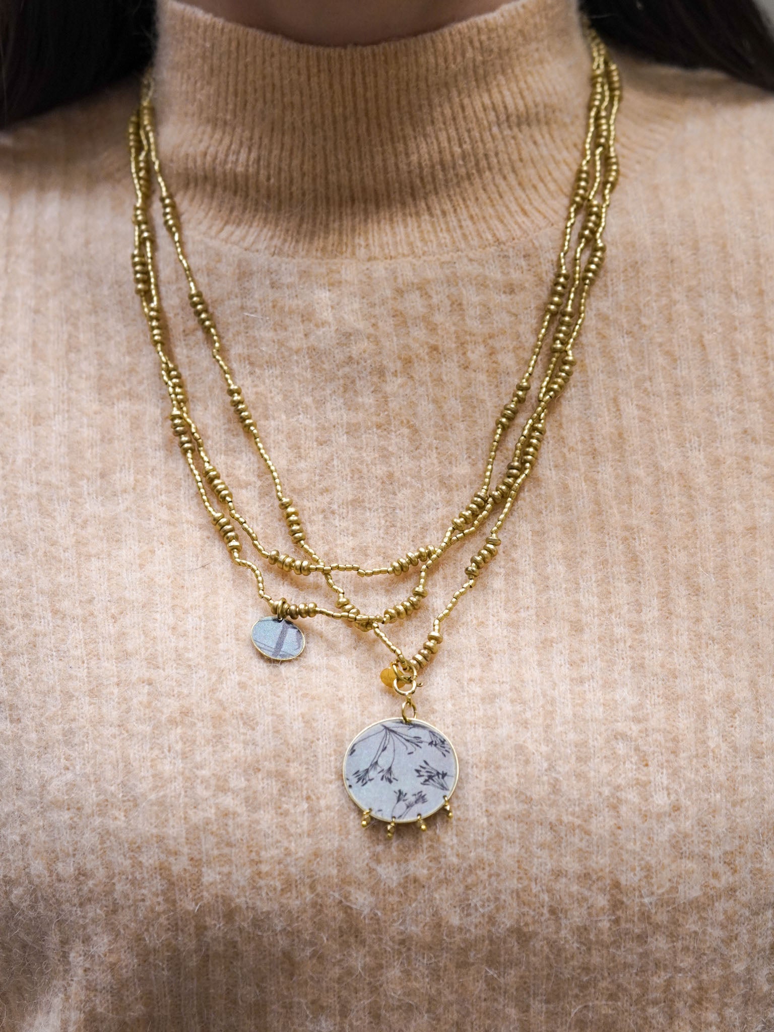 Collana lunga con pendente reversibile tondo con micro-perline
