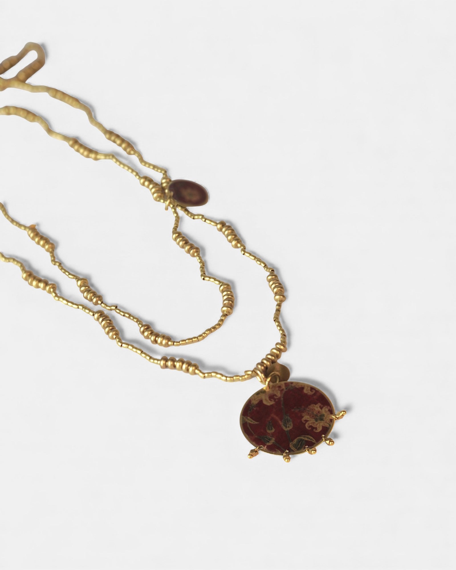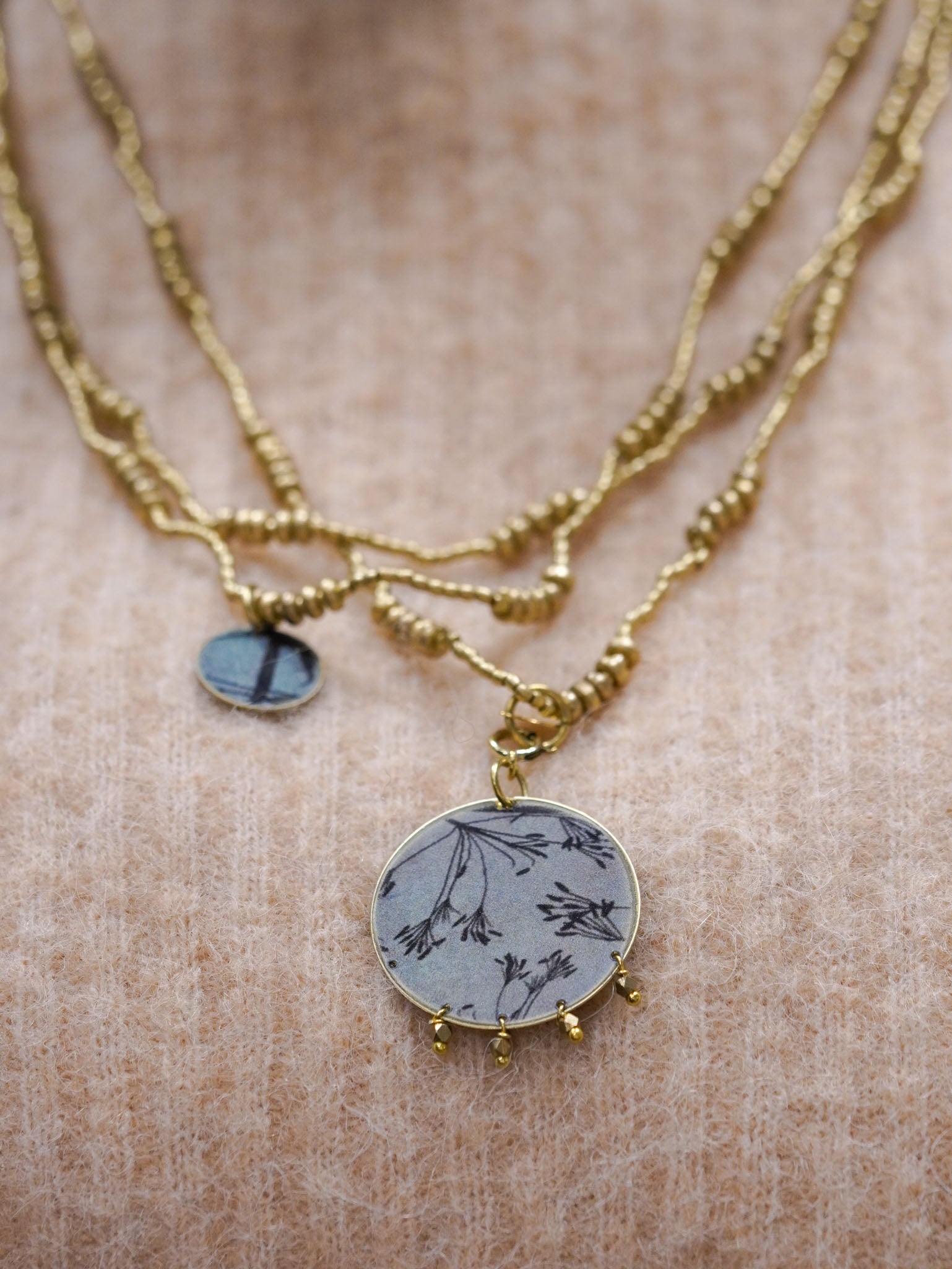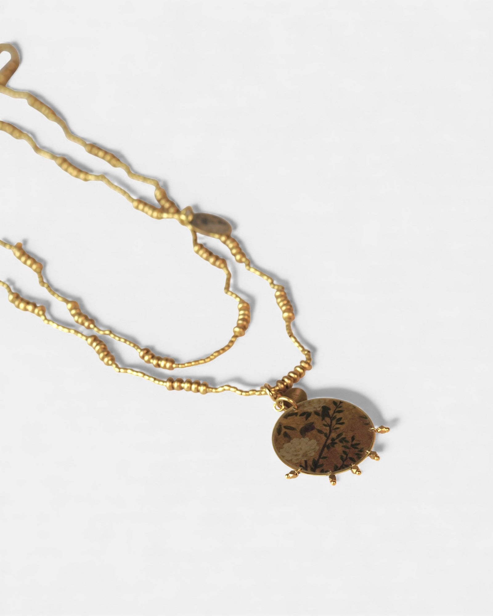 Collana lunga con pendente reversibile tondo con micro-perline