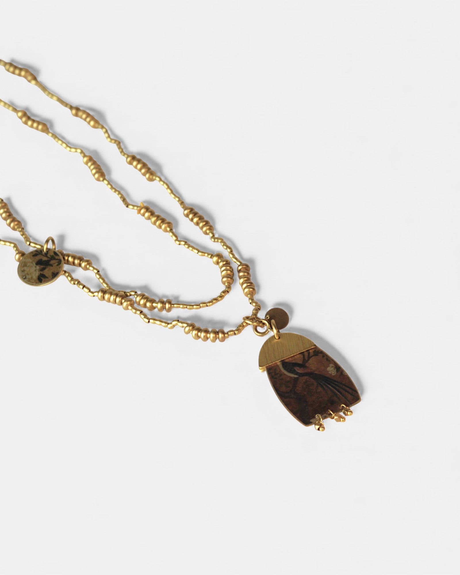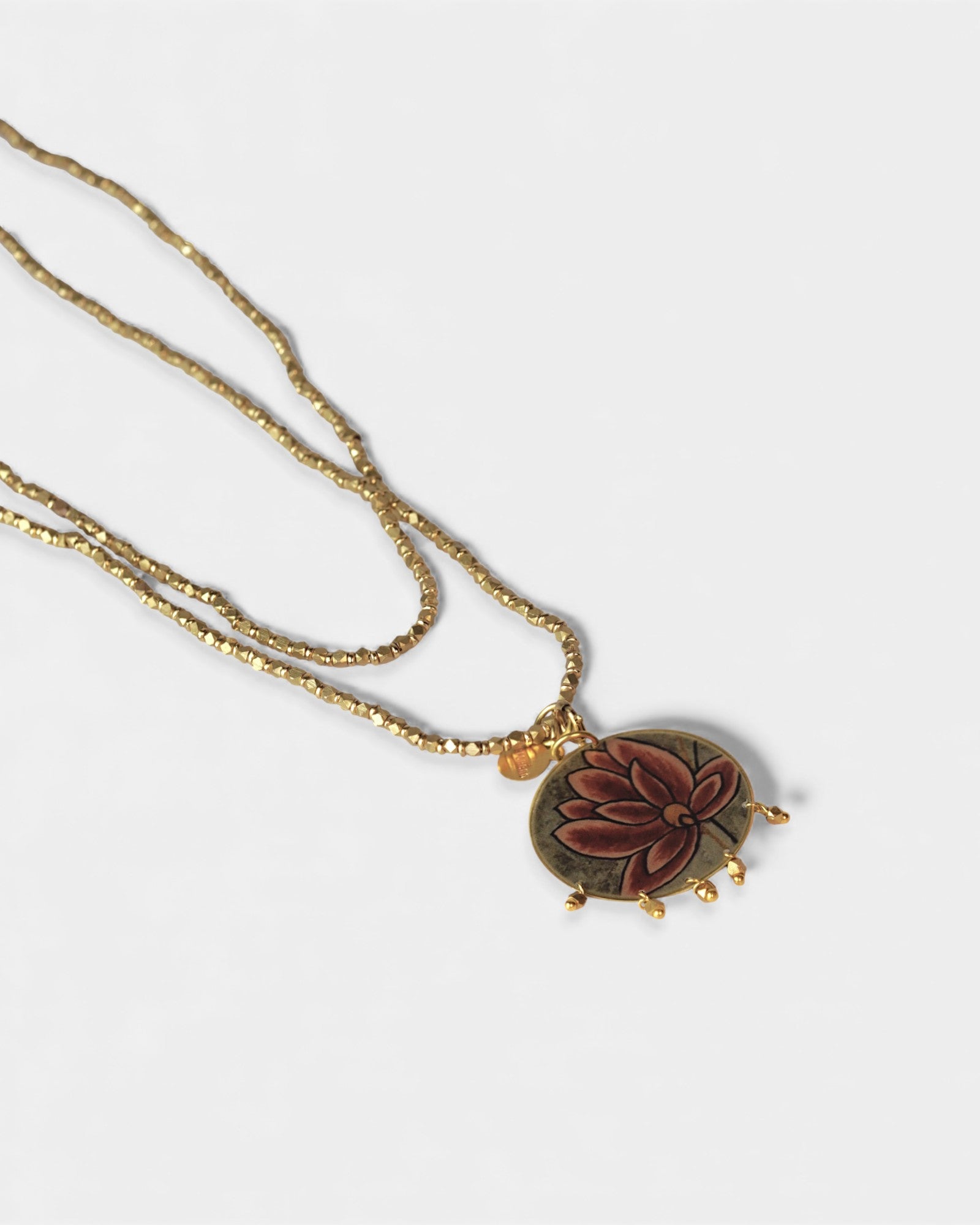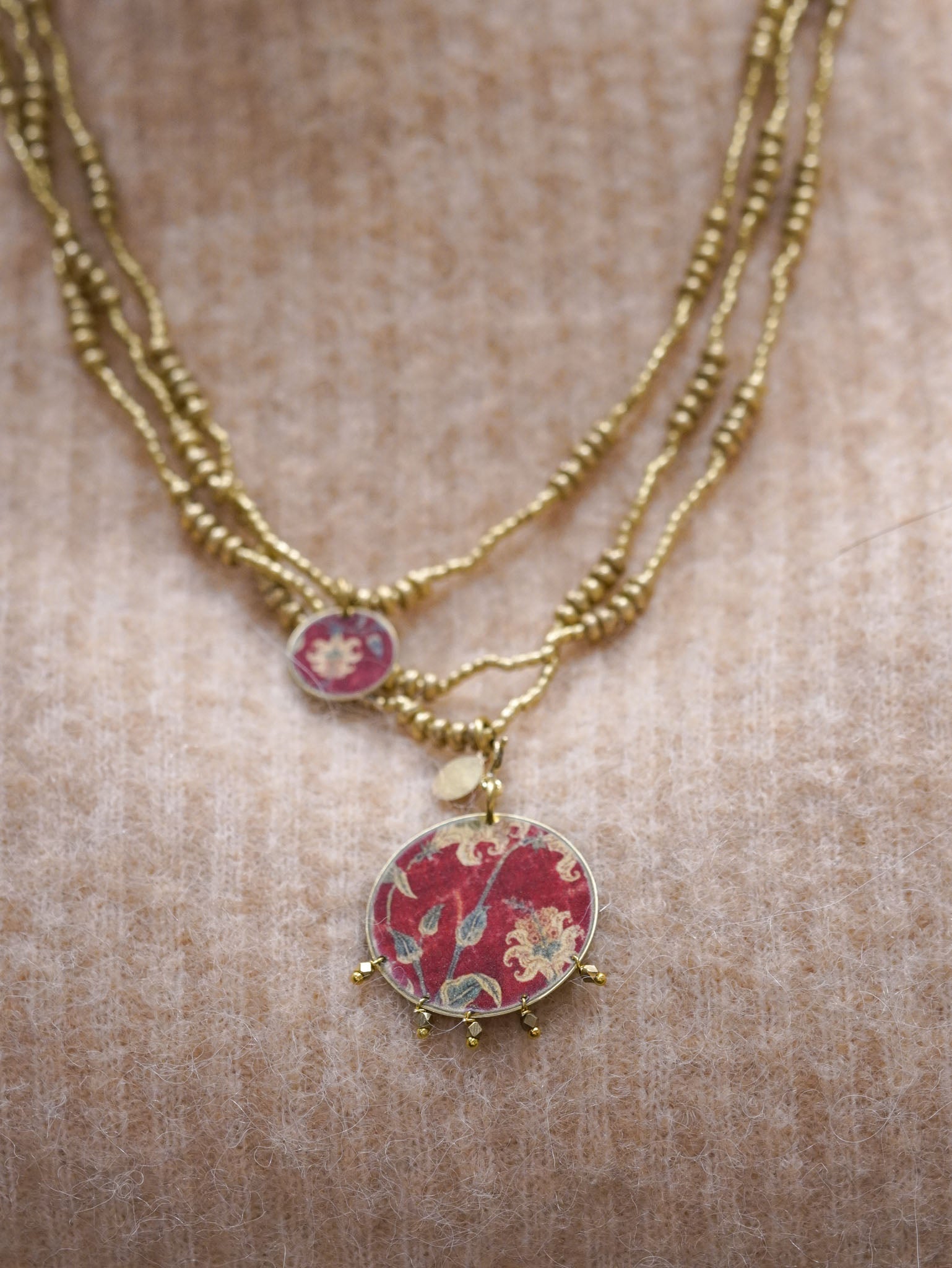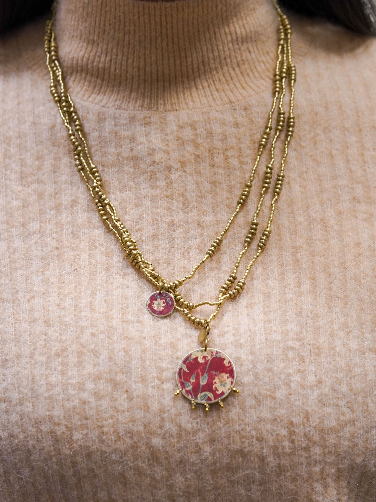 Collana lunga con pendente reversibile tondo con micro-perline