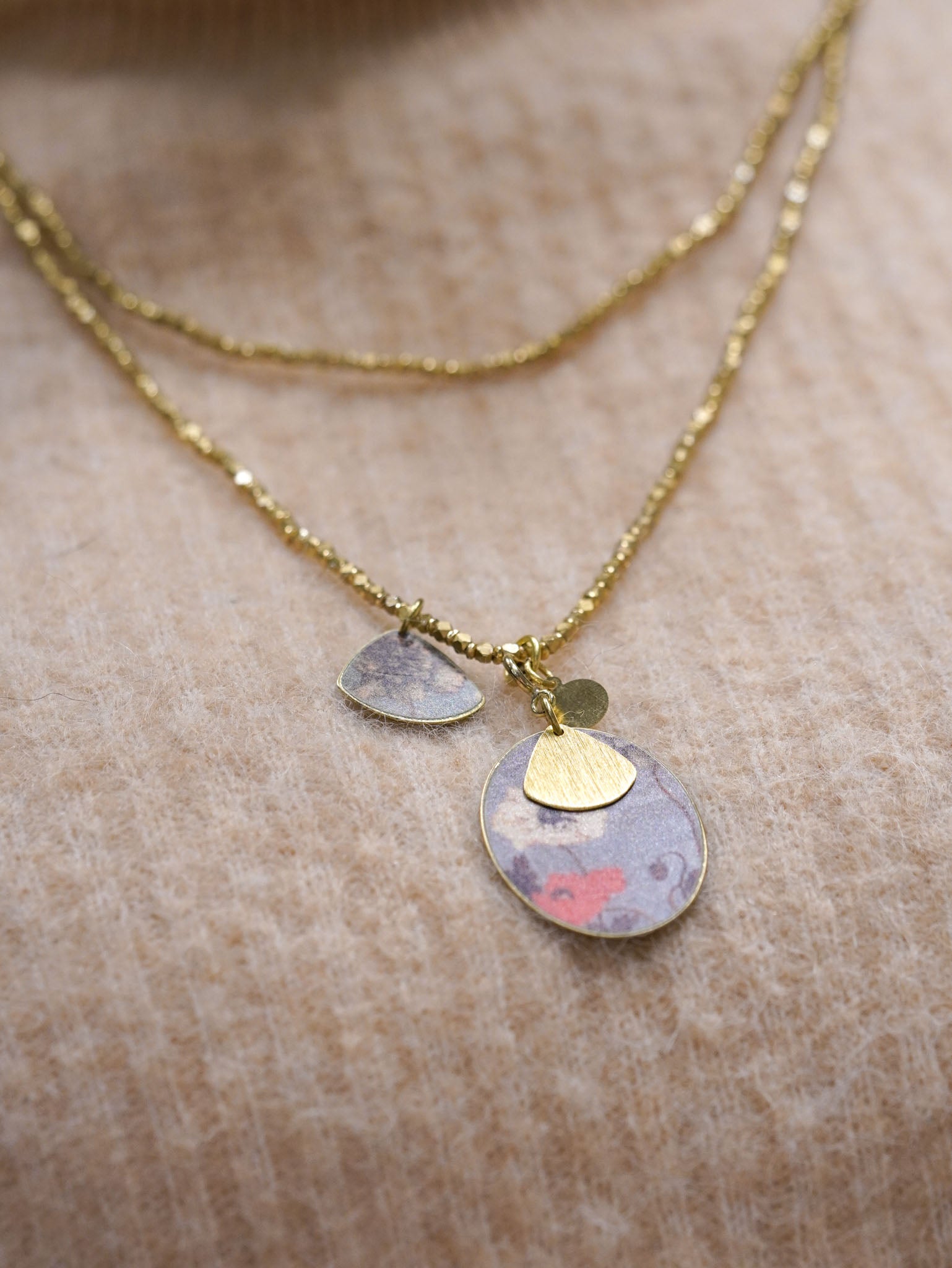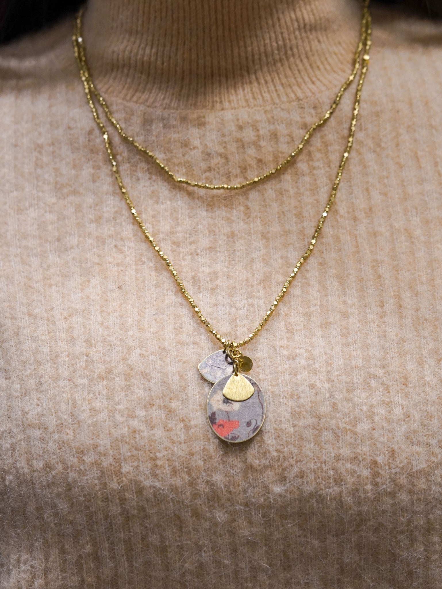 Collana lunga con pendente reversibile ovale