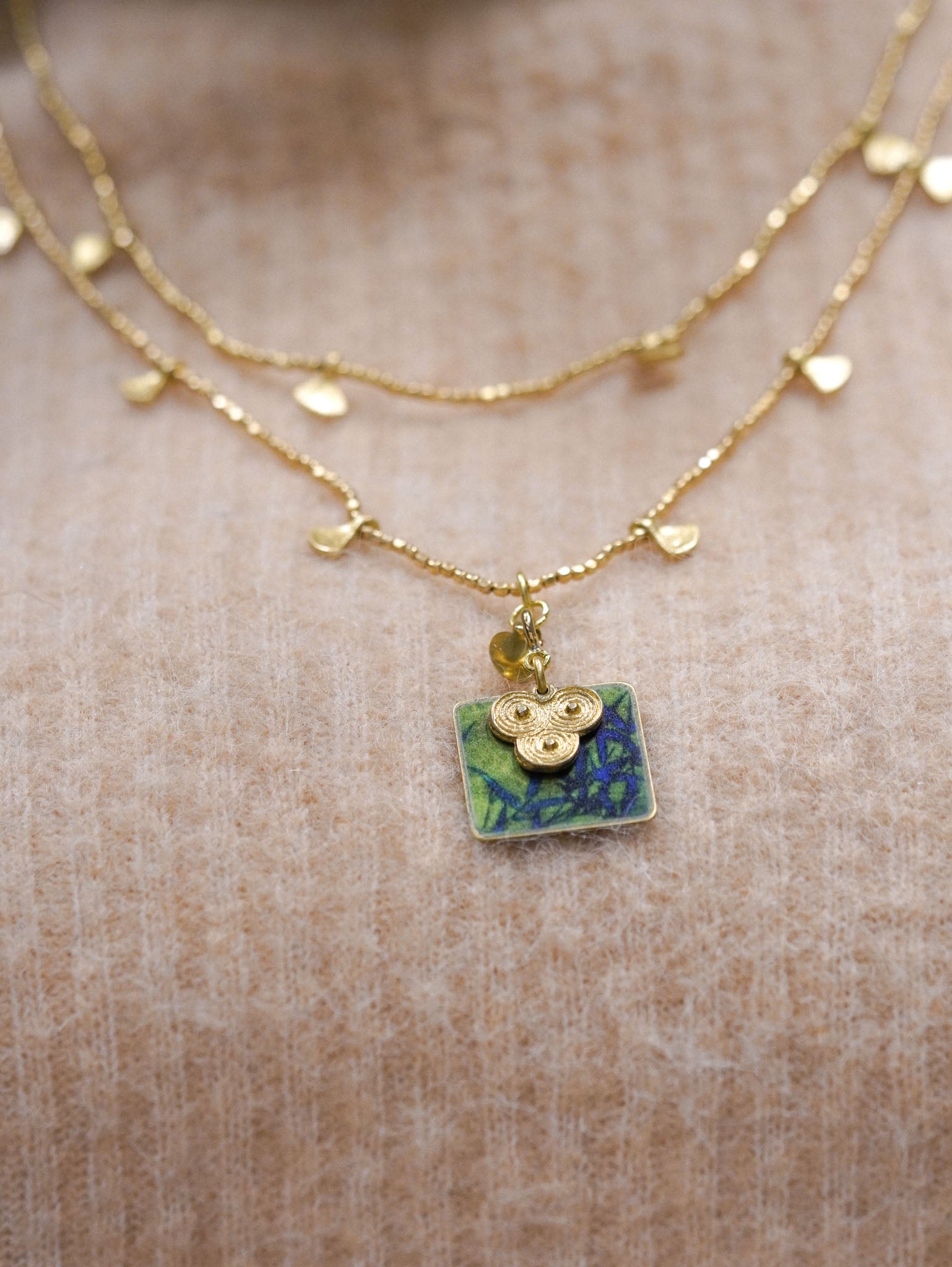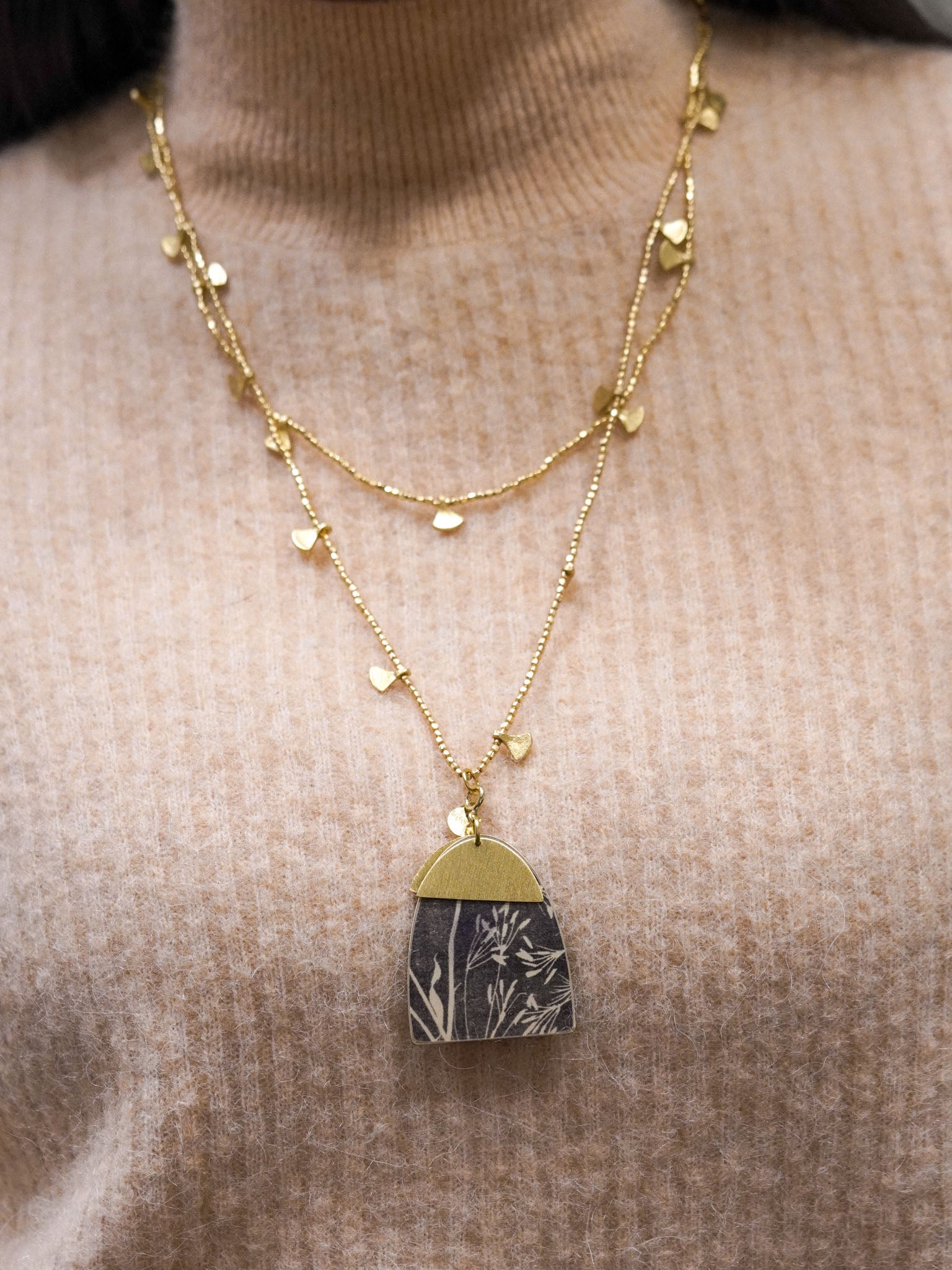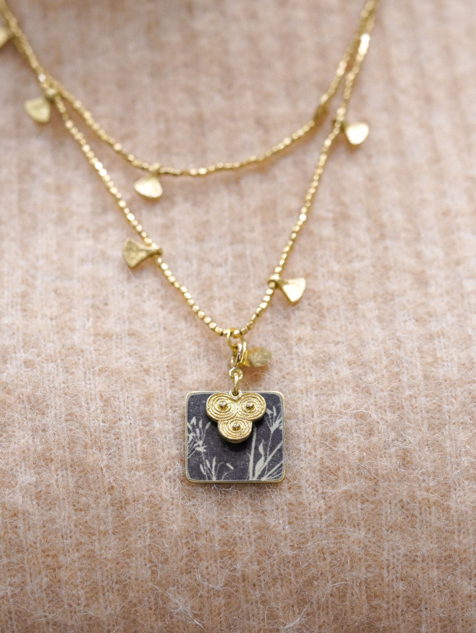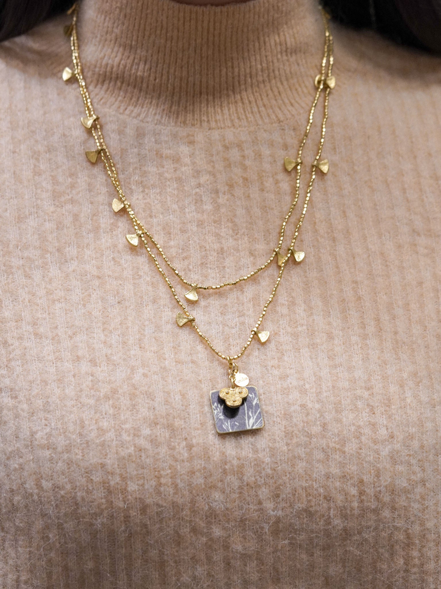 Collana lunga con pendente reversibile quadrato