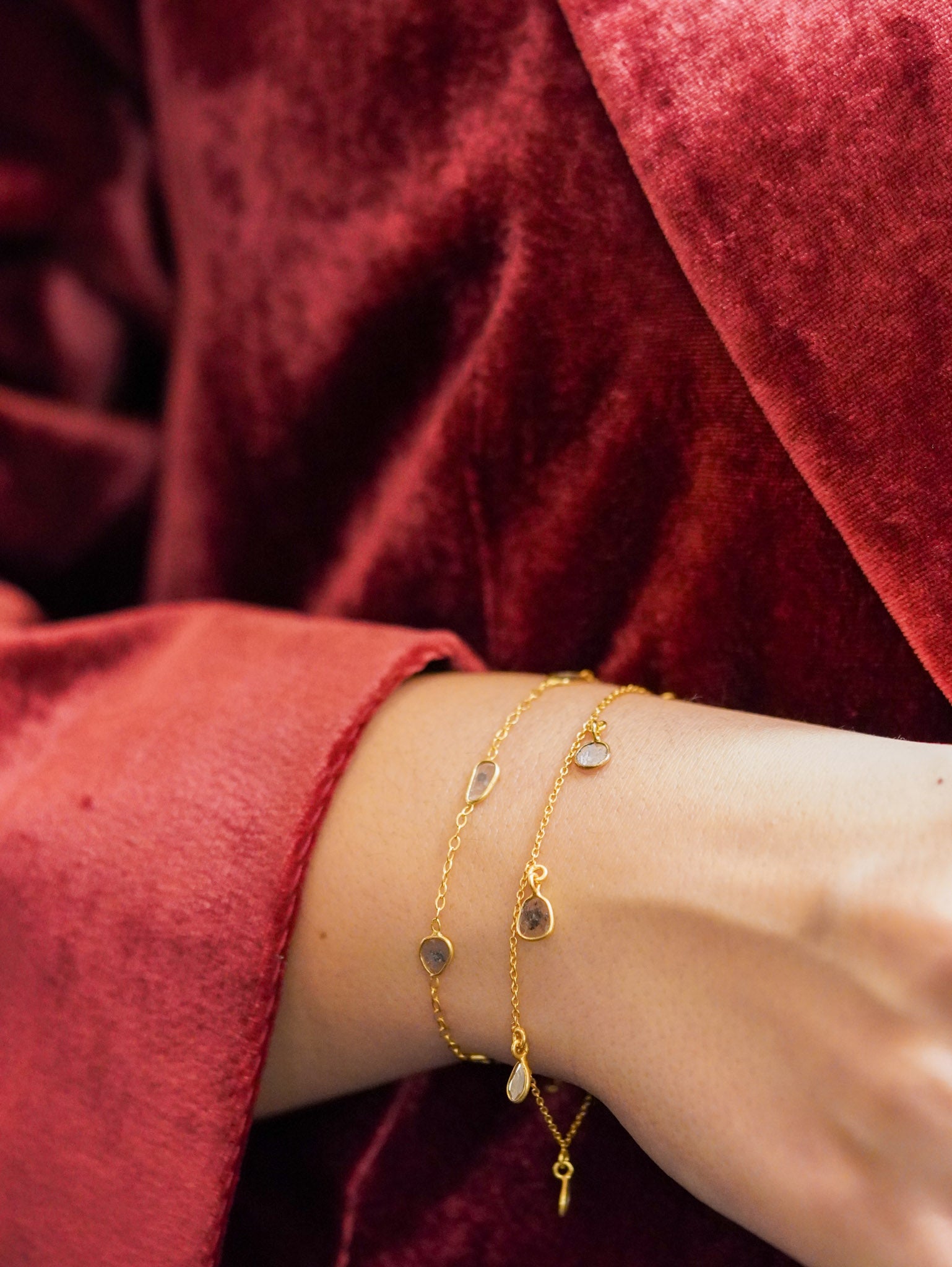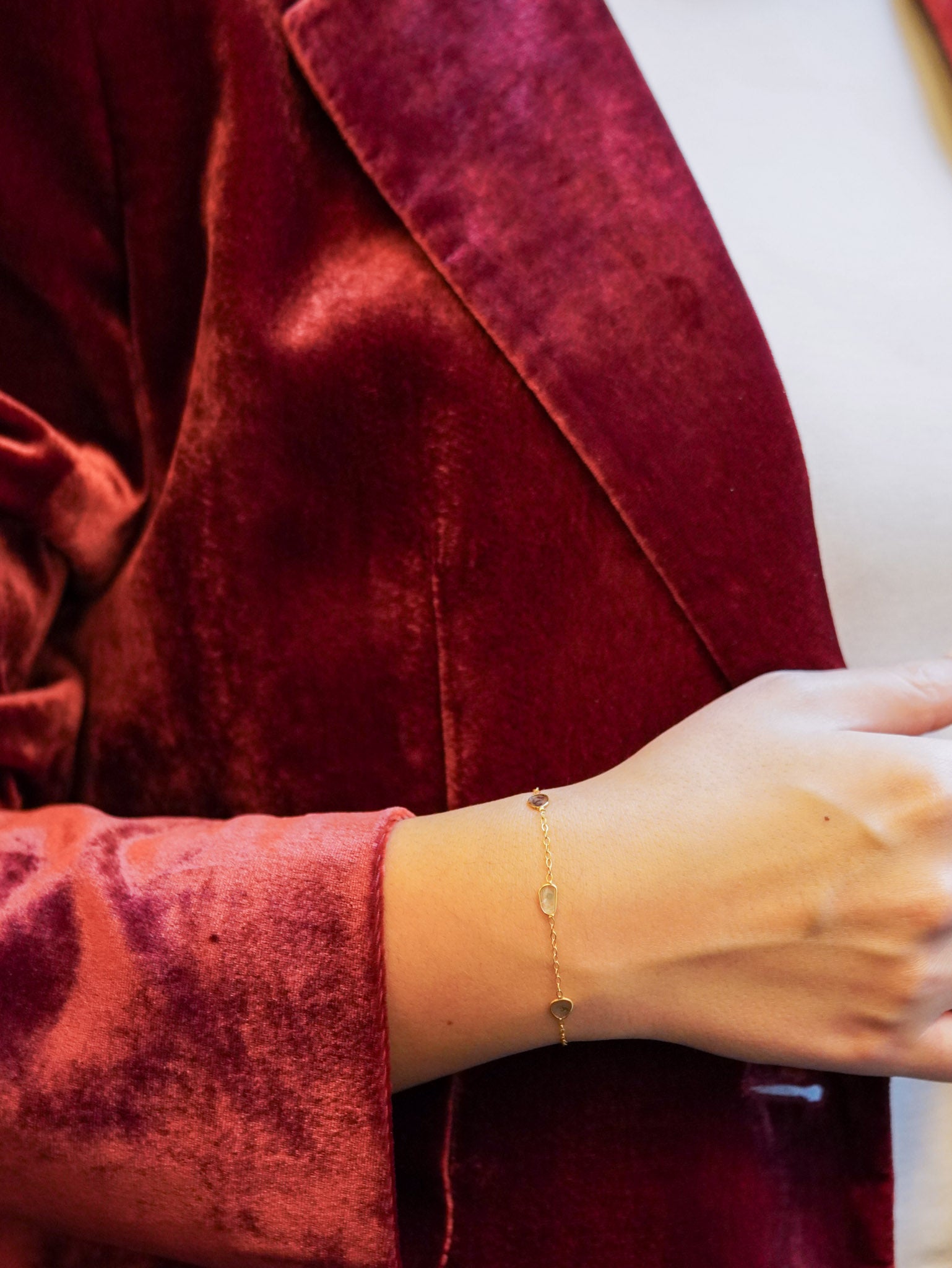 Bracciale in argento dorato con lamine di diamante grezzo