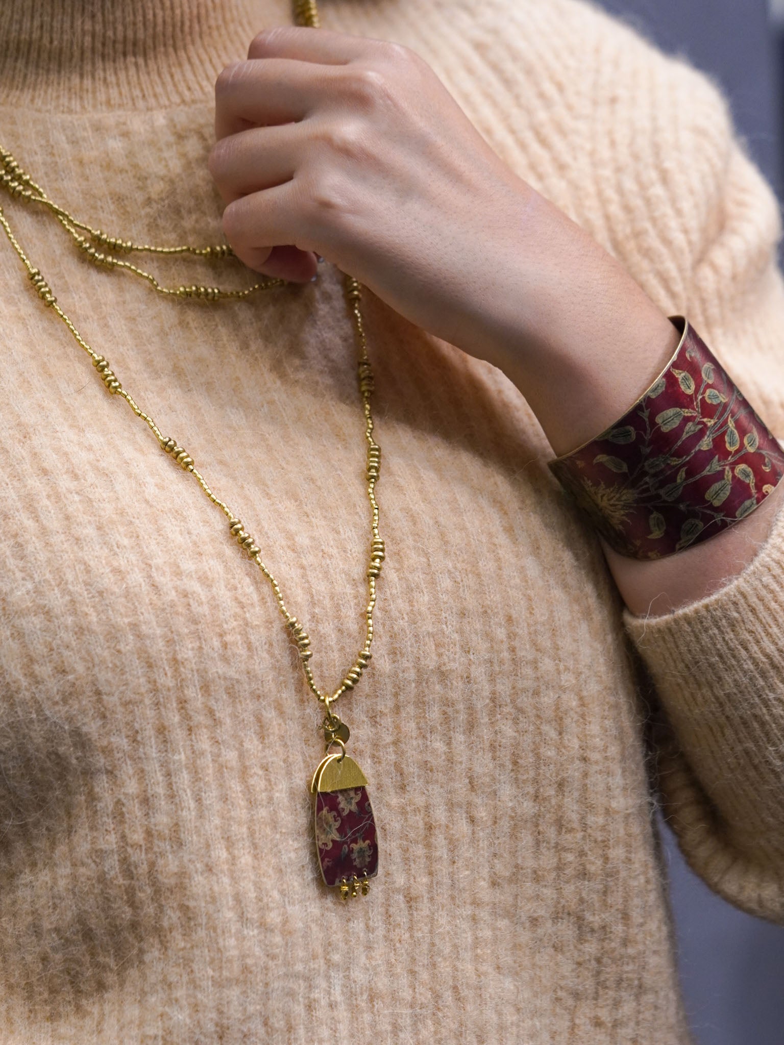Bracciale con elementi satinati geometrici e cristalli multicolore