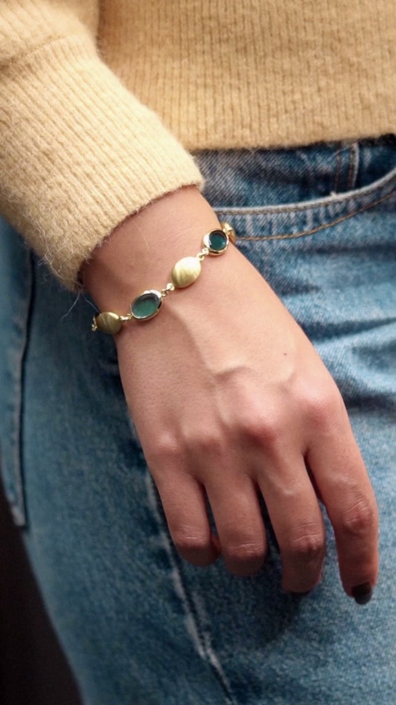 Bracciale con elementi satinati ovali e cristalli di tonalità verde